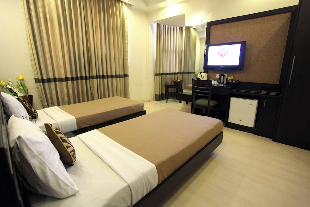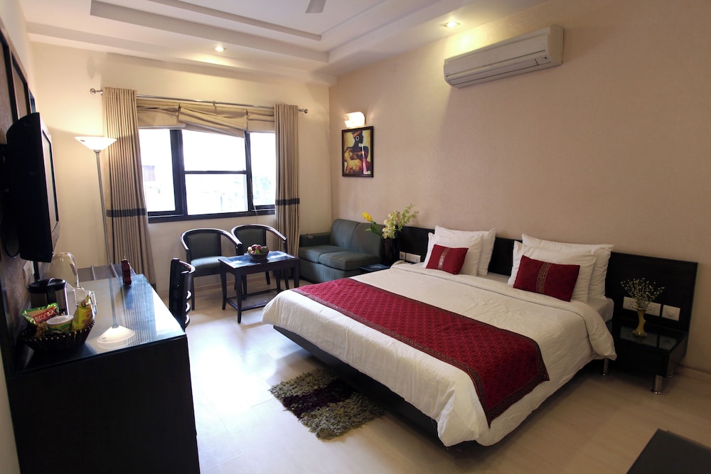 With a stay at Hotel Saar Inn in New Delhi (Karol Bagh), you'll be convenient to Karol Bagh Shopping Market and Birla Mandir Temple. This hotel is within close proximity of Laxminarayan Temple and Gole Market.Rooms Make yourself at home in one of the 17 air-conditioned rooms featuring refrigerators and LCD televisions. Complimentary wireless Internet access keeps you connected, and digital programming is available for your entertainment. Private bathrooms have rainfall showerheads and designer toiletries. Conveniences include phones, as well as desks and complimentary newspapers. Make use of convenient amenities such as complimentary wireless Internet access, a fireplace in the lobby, and a television in the lobby. Getting to nearby attractions is a breeze with the area shuttle (surcharge).Dining Satisfy your appetite at the hotel's restaurant, which serves breakfast, lunch, and dinner. Dining is also available at a coffee shop/café, and 24-hour room service is provided.Business, Other Amenities Featured amenities include a 24-hour business center, limo/town car service, and complimentary newspapers in the lobby. Event facilities at this hotel consist of a conference center and a meeting room. For a surcharge, guests may use a roundtrip airport shuttle (available on request) and a train station pick-up service.