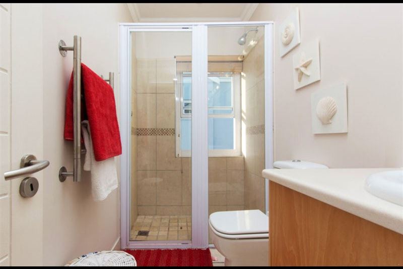 The second bedroom is ideal for children with two single beds and shares a bathroom with the third bedroom that has a sink, shower and toilet. The third bedroom has a double bed and built-in cupboards.