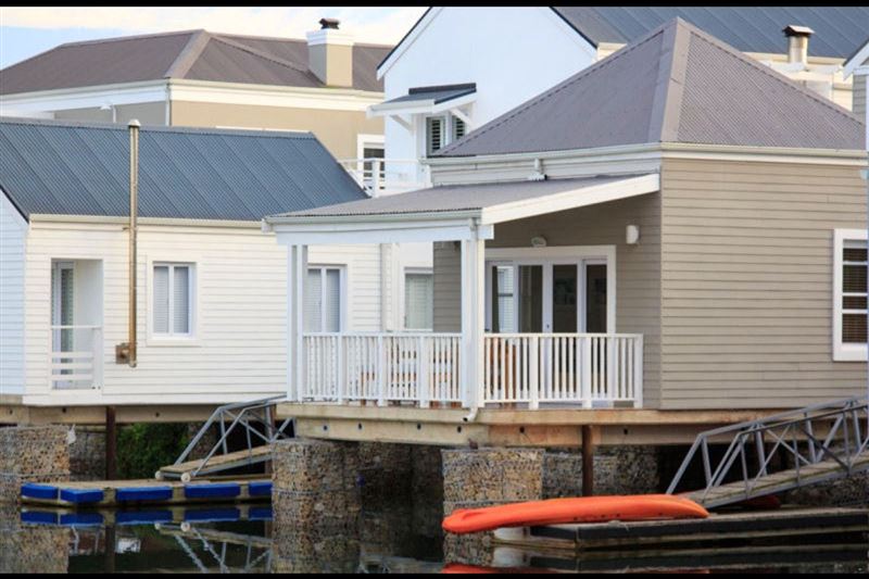 Saffron House also has a single garage, laundry room, open-plan kitchen, dining room and lounge. The living room opens onto a deck with a direct view of the waterway, while the dining area leads to a deck with braai facilities and a private garden which provides access to a private jetty.