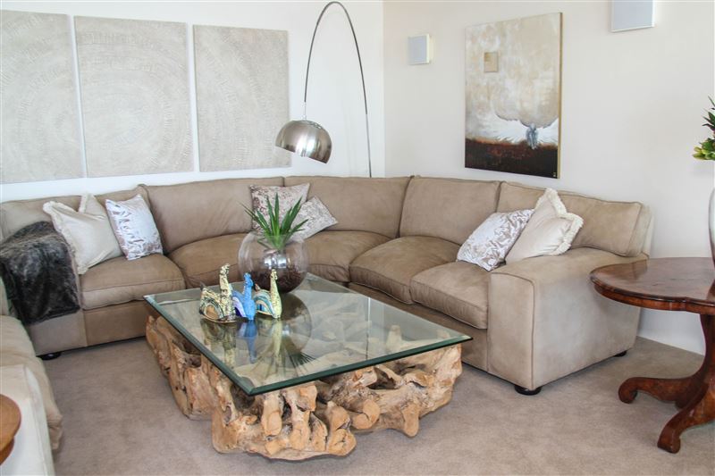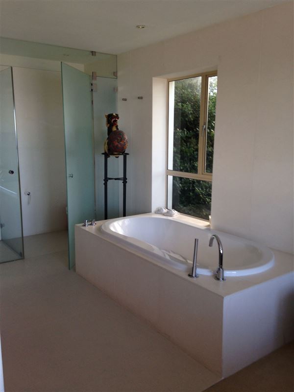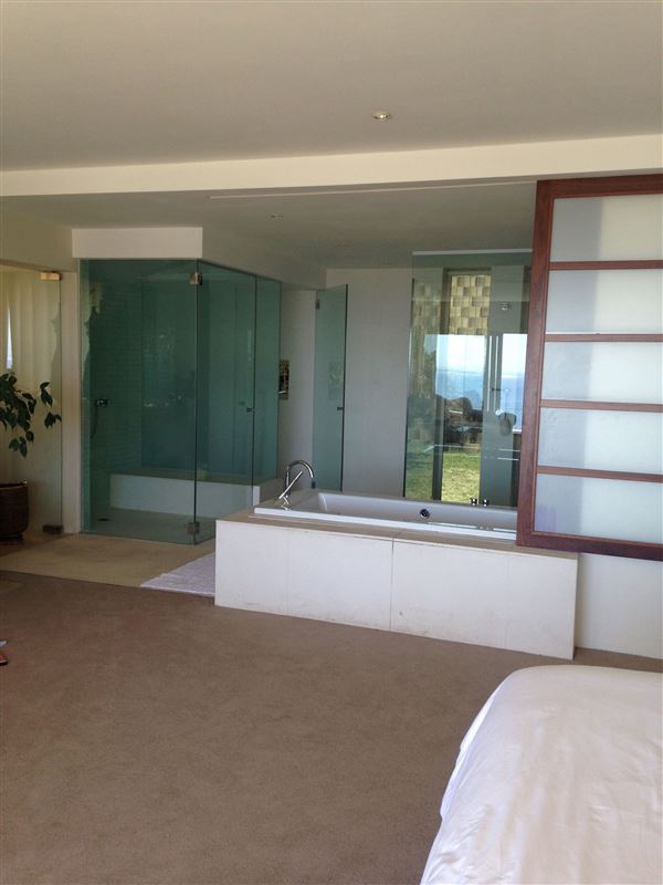 This magnificent home is set on two living levels, and comprises four bedrooms, five bathrooms, two lounges, a huge sauna and a laundry. In addition, the house boasts a salt water solar-heated swimming pool.
