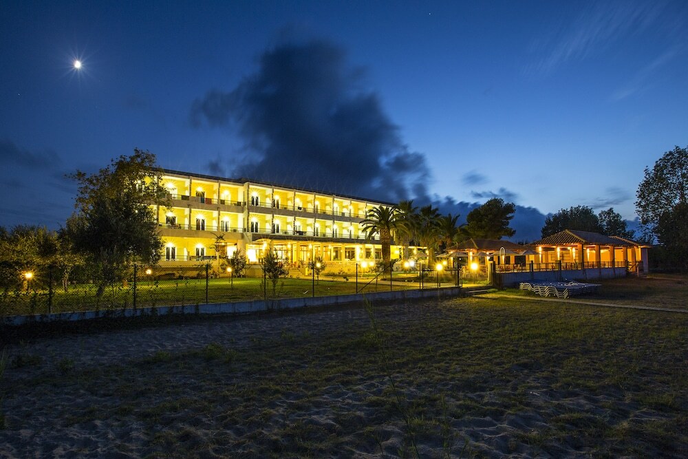 Situated on its private, golden sandy beach, the comfortable San Marina Hotel is located in the very south of the green island of Corfu in the village of Kavos. It enjoys magnificent views over the Ionian Sea and features the only 18-hole mini golf course of the south of the island as well as a lovely pool area surrounded by palm trees. The centre of Kavos with its multitude of nightlife spots is only 150 m away. An ideal hotel for young people or groups of friends.