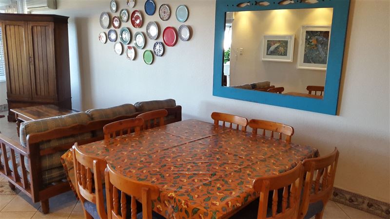 Sea Lodge in Umhlanga Rocks, Lagoon Drive, is in near proximity to the Umhlanga Sands Hotel. This is a three bedroom, two bathroom unit. This ground-floor apartment has a patio with slight sea views, an open-plan lounge, dining area, and kitchen with fridge/freezer, microwave, oven, crockery and cutlery. The unit has ceiling fans, and has local TV; linen is provided however beach and bath towels are not. The access to the unit is direct, there is one undercover parking and open parking, and parking for trailers. The beach access is within the property. The unit is servi