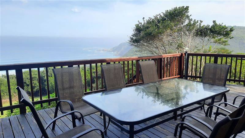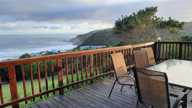 Sea View overlooks the whole of Herold's Bay with a spectacular view of the beach and surrounds. The house is about 1 km walk or drive from the beach, but as the crow flies about 300 m.