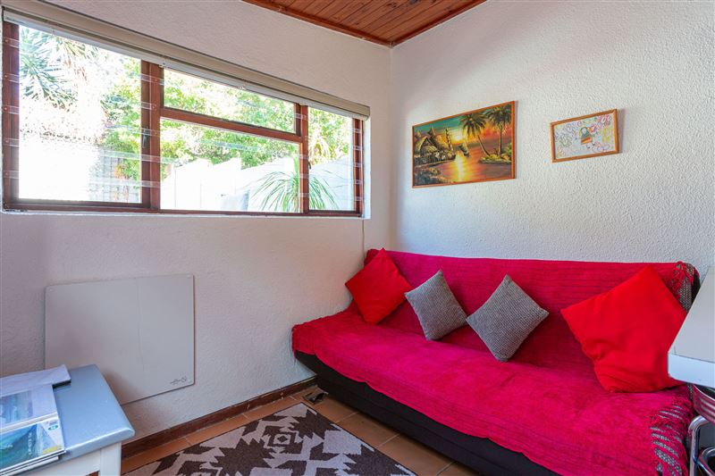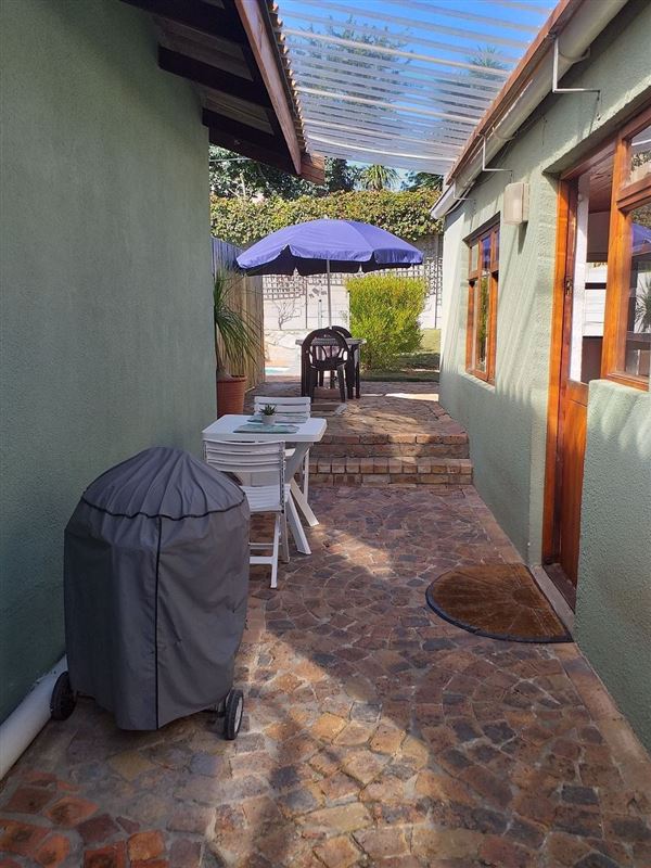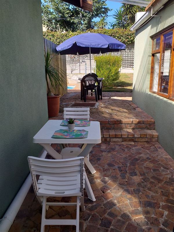 Great Value AND......... a 2 minute walk to the beach! This self catering cottage is separate from the house with its own private garden and use of the pool. The cottage is suitable for 2 guests, there is a sleeper couch in the lounge. Linen and towels are provided but guests are asked to bring their own beach towels. There is one bedroom with a queen size bed, a separate bathroom with a shower, basin and toilet and a combined lounge/kitchen. The lounge has a TV with full DSTV and uncapped wifi. The kitchen is fully equipped with cutlery, crockery, a bar fridge, micro