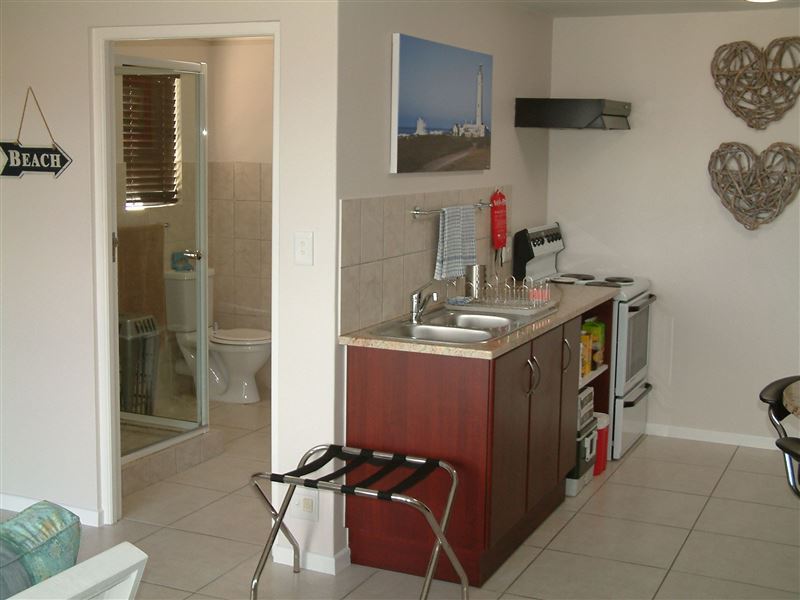 Seascape is a modern bachelor apartment close to the shores of Cape St Francis in the Eastern Cape. The open-plan apartment is ideal for a couple or a parent and a child 10 years and older, sharing. With lovely views of the sea, this is a wonderful option for those looking to relax and unwind. Whales and dolphins are often spotted frolicking in the ocean.The apartment has an open-plan bedroom, lounge and kitchen. Guests have the option of either a king-size bed or twin beds. There is a separate bathroom with a shower. The lounge area boasts a TV with DStv facilities. The fully equipped kitchen