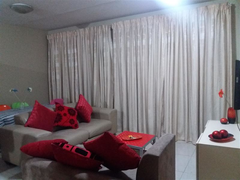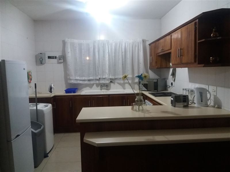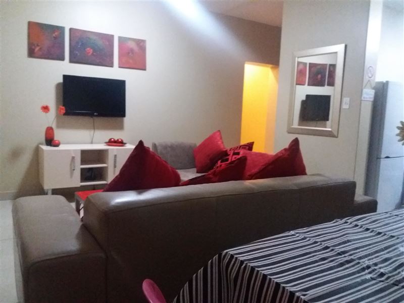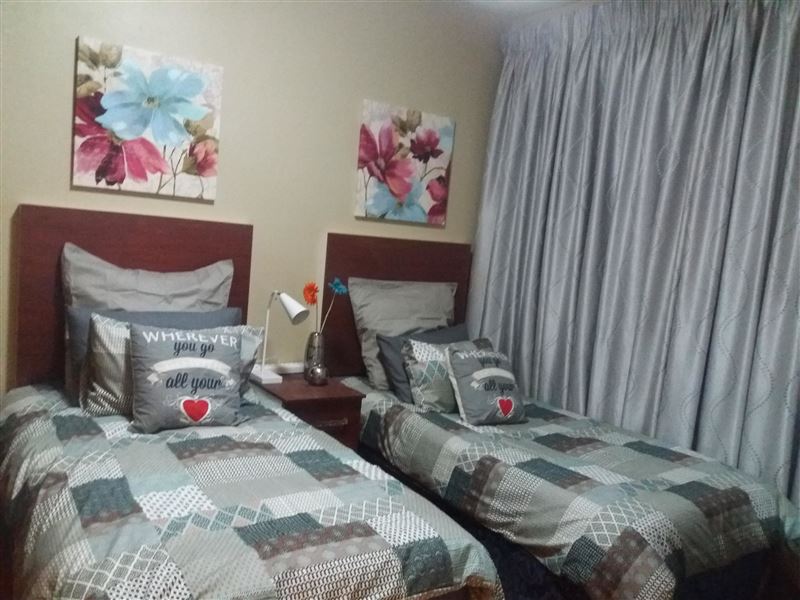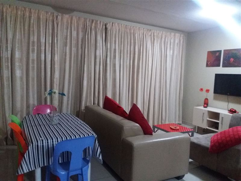 Fully furnished ground floor apartments with garden and braai facility in Bloemfontein.2-sleeper, 3-sleeper, 4-sleeper, 5-sleeper units available.2 extra single beds in living area, so whole apartment can sleep up to 7 guests total.Bathrooms have shower and bath,Lounge has 2 2-seater couches and flat screen tv. Kitchen is fully equipped with built in cupboards, Fridge freezer, oven and stove, washing machine (for clothes), microwave.The complex is secure and we will provide you with a remote for the gate,Parking for one vehicle under cover.Distances to:Mimosa Mall 1.5km,Free state stadium 1.1k