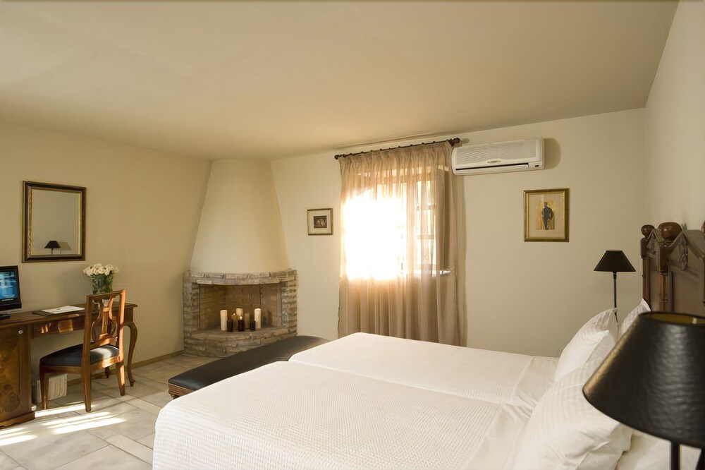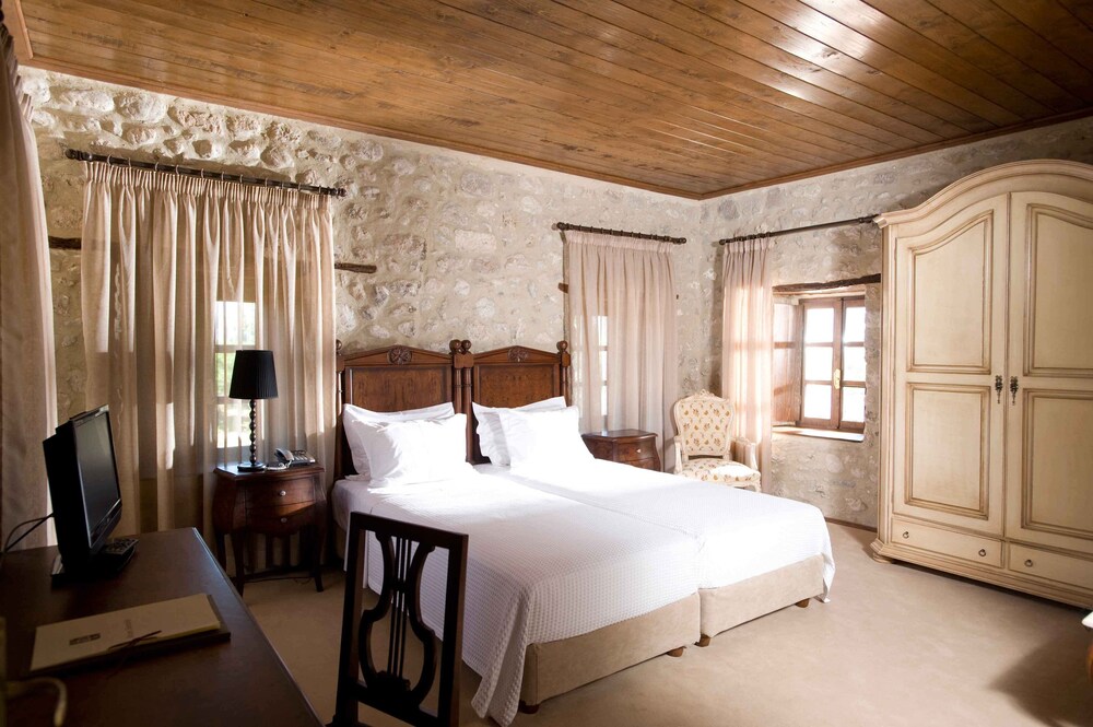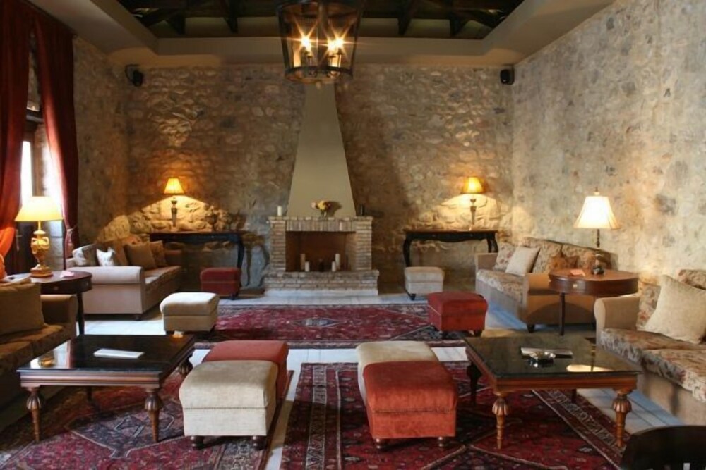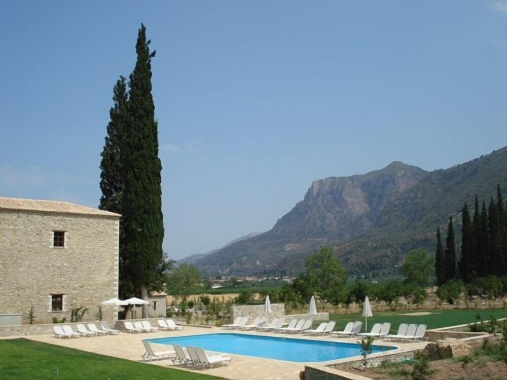 The hotel is located in the village of Eleonas in the Peloponesse, 11 km from Aigio and 167 km from Athens. The beach of Tripia is in distance of 350 m. Outlooking the towering mountain of Helmos and amidst a lush estate of 50.000 square metres with olive and orange groves, cypresses and planes.This is a historic hotel built in the 1840s and till now maintains the original, charming architecture based on natural materials from the local area. The hotel is air conditioned in common areas, features cafe, bar, conference room for business events and restaurant.Services like room and laudry are offered.The 42 deluxe rooms and suites which provide modern living amenities to guests maintaining the character of the original arhitecture with natural materials as dominating ones. They have individual bathroom, air conditioning-heating, satelite T.V, radio, direct dial phone, hairdryer and provides internet access.The indoors and outdoors areas of the hotel are ideal for all sorts of events such as participation in agricultural activities and small conferences. The outdoor fresh water pool is ideal for sunbathing and swimming.The two gourmet restaurants prepare and serves dishes based on products that grew at the own biological farm of the hotel.From Athens airport follow the sign to Attiki odos in the direction of Athina/Elefsina.At Elefsina you automatically enter the highway in the direction of Corinth after this pass the Isthmus of Corinth and continue on the highway towards Patra.After the 158th kilometre on the highway turn right.On the next junction turn left and again left on the following.Stay on the same road passing Diakopto,after 1 km turn right and follow a bridge tunnel.