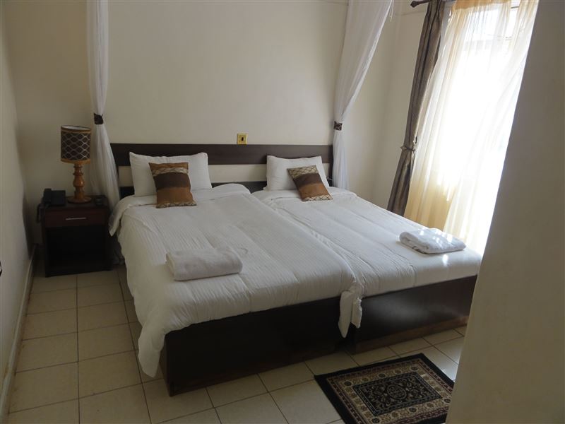 The hotel has 60 guest rooms, all with en-suite bathrooms and beds with mosquito nets. The rooms are either furnished with single beds or double beds. Secure parking is available on the property.