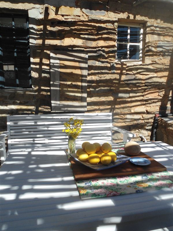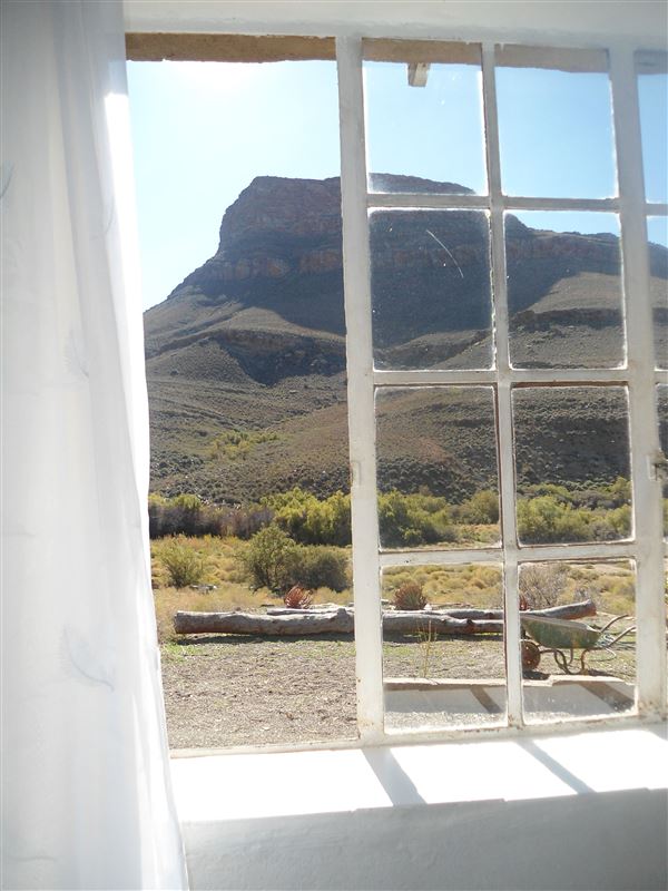 Set 12 km into the conservancy over primitive roads, Shepherds Cottage has spectacular mountain views and is near a river where birds and wildlife are to be seen. It sleeps six.It is a stone built cottage having a large living - dining room with fireplace. Two bedrooms, one with a double bed, and the other with two bunks. Shower with gas geyser, toilet. Kitchen: gas hob, gas fridge. Paraffin lamps, plates and cutlery, saucepan, kettle, mugs, glasses. Outside braai.Bring: matches, bedding, towels, soap, food, drink, hiking boots, swimming gear.