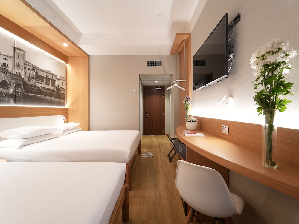 Facilities and services include a 24 hrs reception, elevator, safety box at front desk, restaurant, bar, room service, several meeting rooms, laundry service (extra charge) and parking.The rooms feature air conditioning, wireless internet (extra charge), TV, telephone, safety box, mini bar and hairdryer.Address: Via Unità d'Italia 346, 37132 Verona, Italy