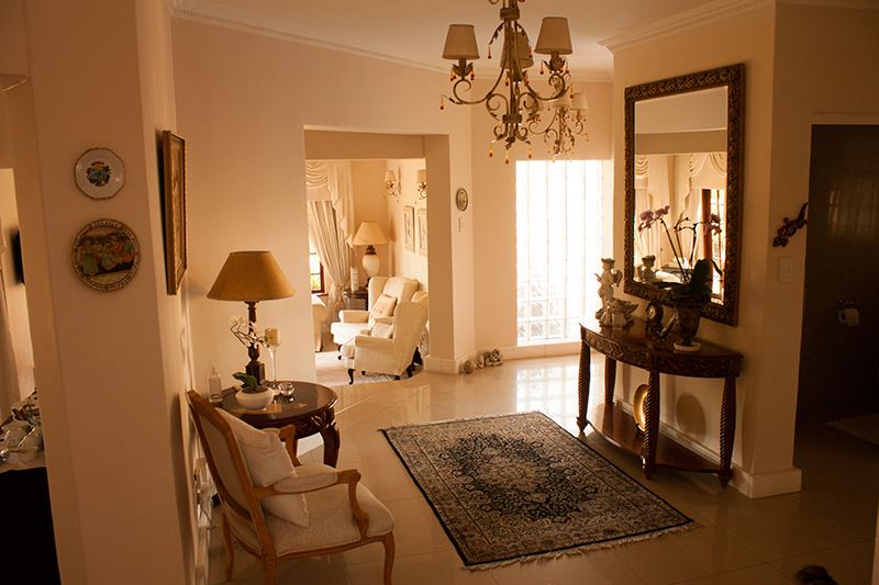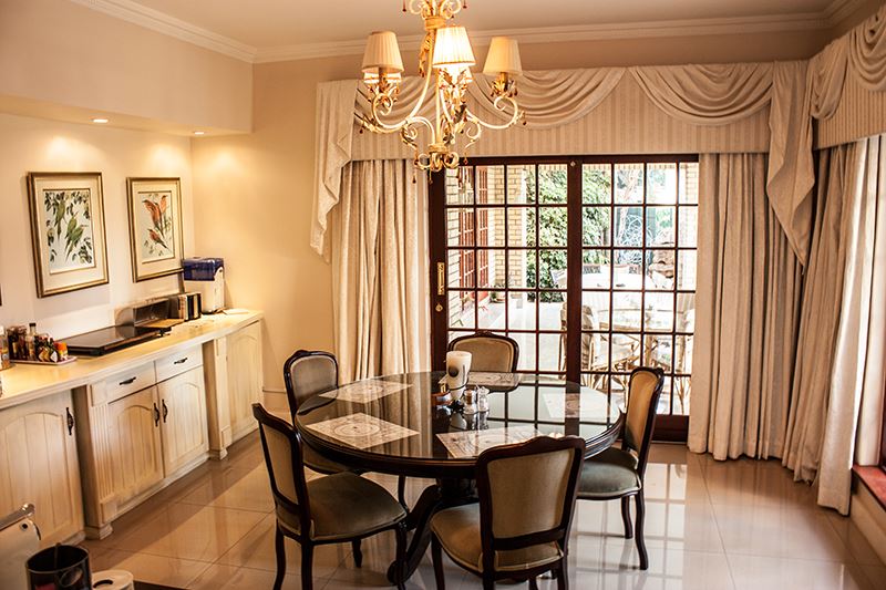 Shrubland Rose is located in a quiet residential cul-de-sac in the heart of Sandton Business district and within walking distance of Sandton City with its cinemas, restaurants and shopping centers. We offer a selection of comfortably furnished and fully equipped double rooms with queen-size beds and twin rooms with single beds, all with en-suite showers. Room 2 is the budget room with single bed and is not en suite but has a bathroom adjacent to the room in the passage. There is a large beautifully decorated lounge/reception area and dining room. Guests receive complimentary refreshments in