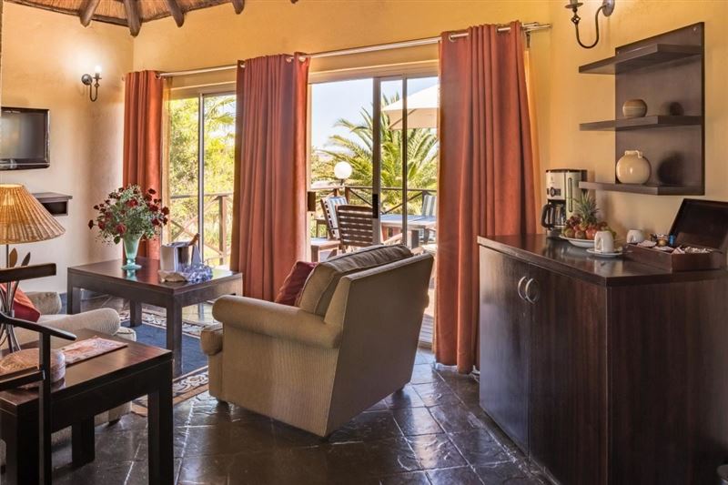 The rooms of Shumba Valley Lodge include satellite TV and an electric kettle. The suites have a private pool. All of the thatched rooms, including two exclusive suites, are furnished with dark wooden furniture and muted colours.