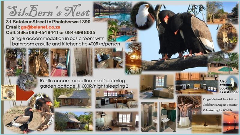 SilBern's Nest is home from home but very close to the Big5, a rustic accommodation in our Garden Cottage on Kruger National Park's doorstep, less than 4km away.