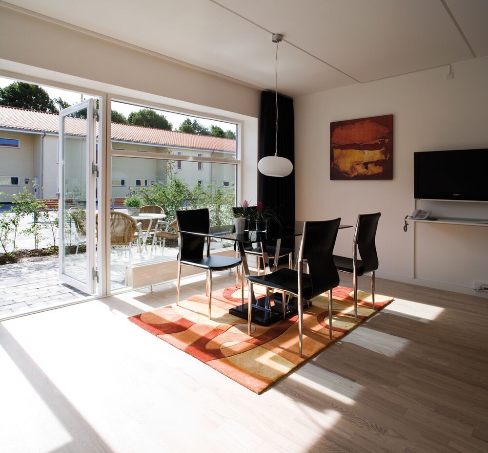 The hotel is built in various blocks with ample space around them. Every room or apartment has it own parking space just outside. In the reception block the guests find the breakfast room where also light snacks and refresments are served during the day and evening.