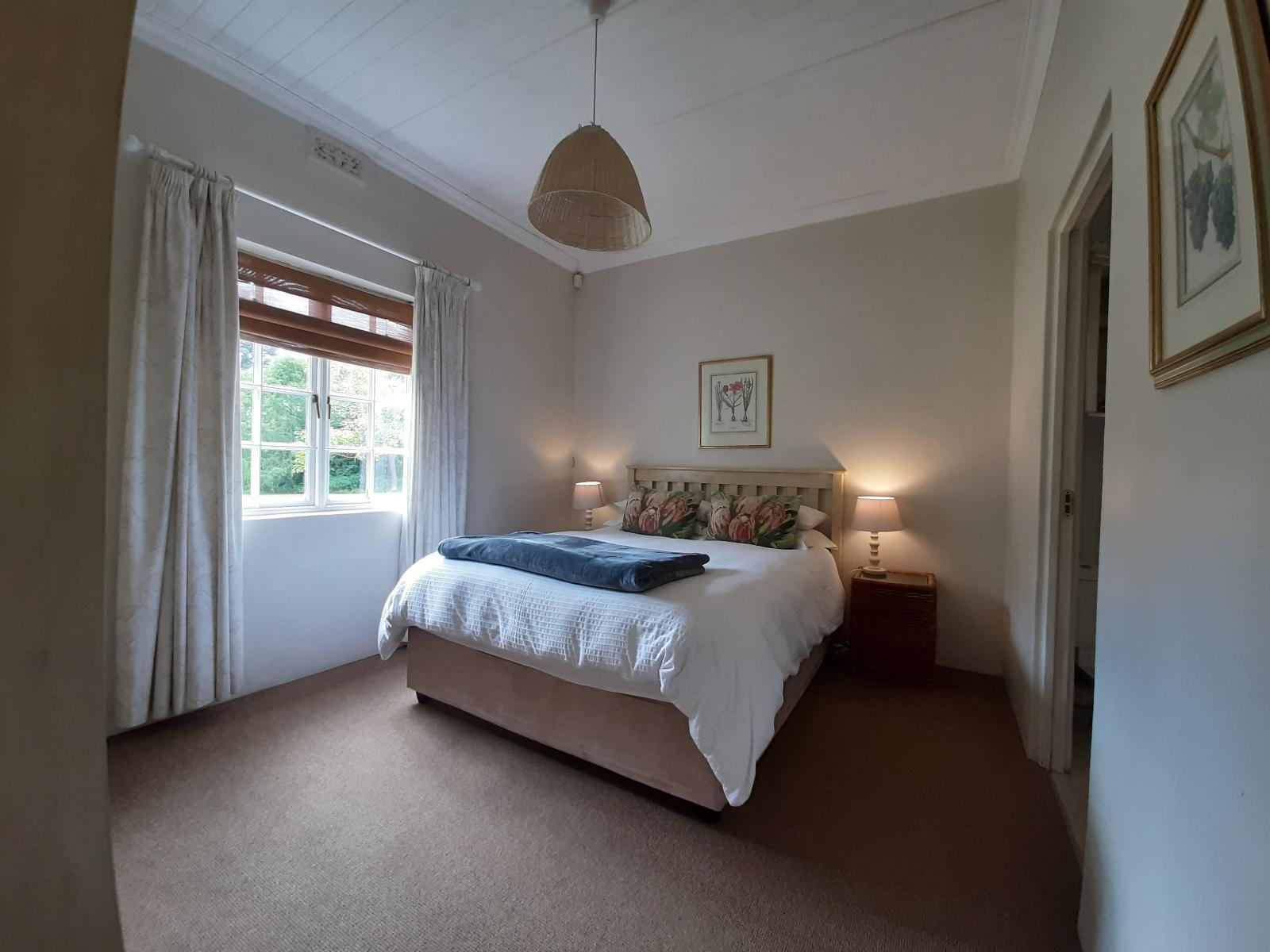 Our establishment is conveniently situated on Valley Road, between Stellenbosch 12km and Paarl 12km, at the wine-growing foothills of the Simonsberg Mountain. The perfect location from where visitors can either explore the many famous Wine Estates in the area, or take trips to Stellenbosch, Paarl, Franschoek, and Cape Town International Airport is only a 30 min drive away. Willow Cottage is a self-catering loose standing unit (sleeps 5) and is tucked away in our large farm garden with its own private driveway. Here you can enjoy total privacy with big open lawn spaces around the cottage and a