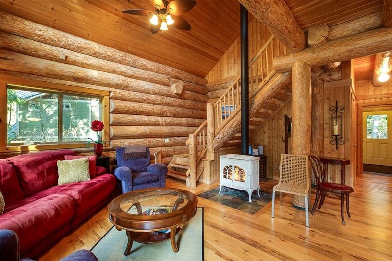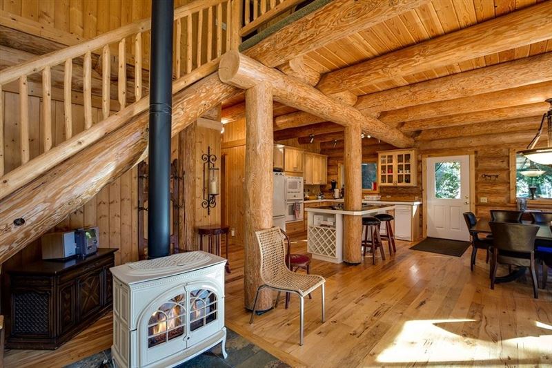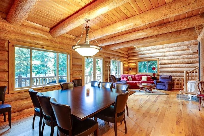 Situated at one of the very best locations in the desirable Snowline neighbourhood, you can literally watch your children from both the front deck and the living/dining area in this beautifully handcrafted two-story, three-bedroom, one ¾-bath log home. The first floor features an open floor plan living, dining, and fully equipped kitchen area complete with a marble inlaid island cook station/breakfast bar, plus full-sized appliances including a dishwasher and a built-in microwave. The dining area includes a very large table…perfect for family board games, puzzles, and great conver