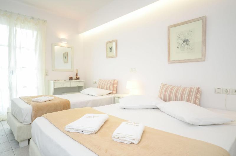 Located in Naxos (Old Town Naxos), Sofos Studios Fitness & Spa is minutes from Agios Georgios Beach and Pyrgaki. This hotel is within close proximity of Kouros Statue and Venetian Museum.Rooms Make yourself at home in one of the 11 air-conditioned rooms featuring flat-screen televisions. Complimentary wireless Internet access keeps you connected, and digital programming is available for your entertainment. Private bathrooms with showers feature complimentary toiletries and hair dryers. Housekeeping is provided daily, and cribs/infant beds (complimentary) can be requested.Amenities Be sure to enjoy recreational amenities, including an indoor pool, a steam room, and a fitness center.Dining Buffet breakfasts are available daily for a fee.Business, Other Amenities The front desk is staffed during limited hours. For a surcharge, guests may use a roundtrip airport shuttle (available on request) and a ferry terminal shuttle.