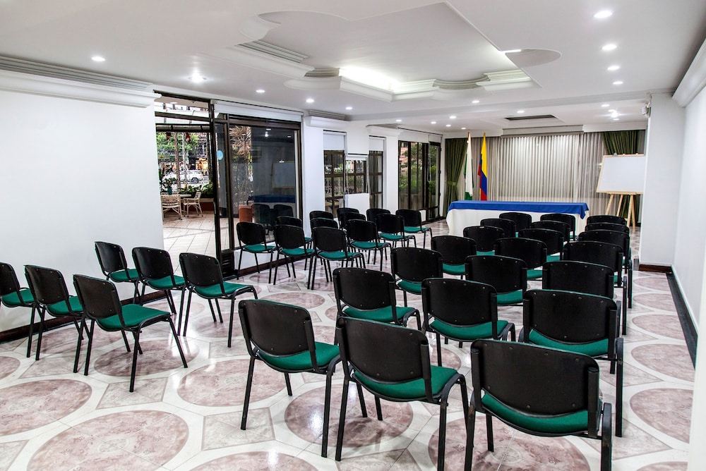 The hotel is located on Calle 35 in the Laureles residential district, which is a strategic point of the city offering transportation links and quick access to anywhere in the city. Guests will find Mills Mall, Pontifical Bolivarian University, the University of Medellín, a metro station and sports grounds nearby and it is just minutes from the exhibition centre.This air-conditioned business hotel offers event space with the latest technology that features natural and artificial lighting, making the hotel the perfect choice for events, forums and seminars. Facilities at the hotel also include Internet access, room service and a safe. There are 34 rooms in total at this city hotel. Guests are welcomed in the lobby with 24-hour reception and check-out services, a currency exchange, cloakroom and panoramic lift access to the upper floors. Food and drink are served in the café, bar and restaurant. An auditorium, laundry service, car park and a garage are also offered.The rooms are luxuriously equipped with cable TV, a fridge, minibar, Internet access, a safety box and a direct dial national/international telephone. All of the rooms are en suite with a shower and hairdryer. A double bed, radio, kitchenette and a balcony or terrace also come as standard. The air conditioning is individually regulated.Parasols offer shade from the sun on-site.Guests can select breakfast from a buffet each morning. Lunch and dinner can be enjoyed from a set menu or à la carte.Leaving the Olaya Herrera Airport in Medellin, take Avenue 30 and turn off Highway 25 onto Highway 33 (second on the left) and continue straight until the Bulerías roundabout. Continue straight through the roundabout and continue on the same street. About two streets later upon reaching 76, turn right and follow the street. At Fourth Avenue turn left on 35th Street. The hotel is 2 blocks down the street.