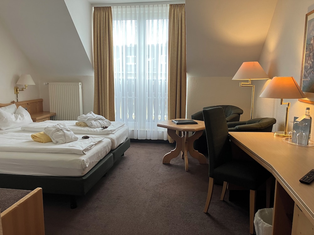 Located in the Erzgebirge-Vogtland Nature Park this hotel in Schwarzenberg offers modern spa facilities gourmet food and a private ski slope. A mini-golf course and 2 tennis courts are also available.Occupying a historic building the Sonnenhotel Hoher Hahn has country-style rooms with cable TV and bathroom. Most rooms have a balcony or terrace.An indoor pool different saunas and a beauty salon can be found in the Sonnenhotel's spa area. Massages and physiotherapy treatments are available here.Traditional food from the Erzgebirge Mountains and international specialities are served in the Hoher Hahn's restaurant with terrace. The conservatory enjoys panoramic views.Hiking cycling and horse riding are possible nearby. The Czech border is just a 20-minute drive from the Hoher Hahn Sonnenhotel.