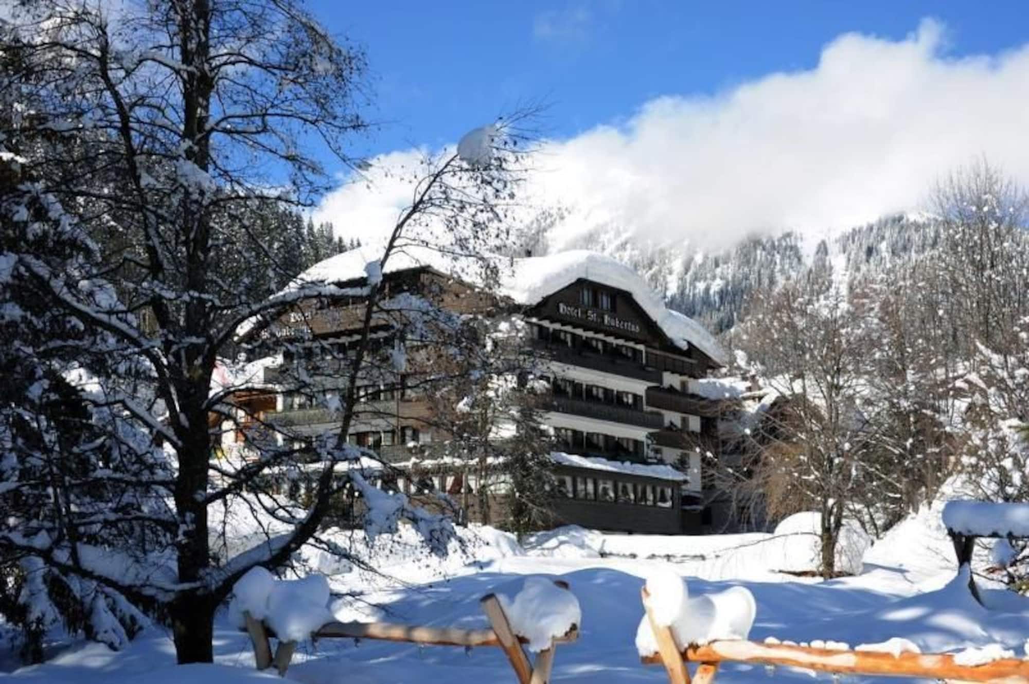 In the heart of Madonna di Campiglio and just 50 mt. from the ski-lifts, Hotel St. Hubertus is the ideal holiday location for mountain enthusiasts. All the bedrooms have private bathroom, colour satellite TV, radio, direct dial telephone, safe, hairdryer and balcony with panoramic view. Plentiful breakfast buffet. Spacious lounge, bar, garden and private park with heated swimming pool. The breakfast is abundant and accurate service, buffet, fresh pastries, tarts with berries, homemade cakes, crepes, fruit, assorted cold, mountain honey, jam of the house, choice of fruit juices and hot drinks. Restricted to customers of St. Hubertus and dedicated to Their days of relaxation, the hotel offers a wonderful park-garden with heated swimming pool. On request, snacks and main dishes served in the garden. Remarks: Rates do not include any local tax that have to be paid directly to the hotel in addition to the total cost.