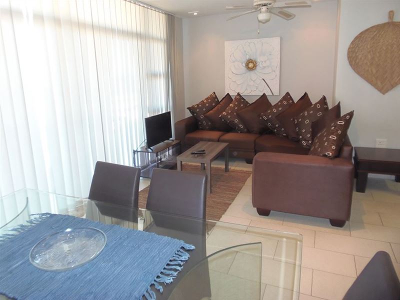 St. Tropez A is a self-catering apartment located in Margate North, about 300 metres from the beach.This apartment can accommodate up to six guests and comprises three bedrooms and two bathrooms. The kitchen and living area is open-plan. The main bedroom comprises a double bed and an en-suite bathroom. The second bedroom contains a double bed and the third bedroom has two single beds. The second bathroom has a shower, toilet and basin. There is also one fan.The kitchen is equipped with a stove, oven, fridge-freezer, microwave, washing machine, cutlery and crockery. Ther