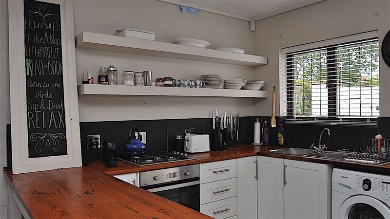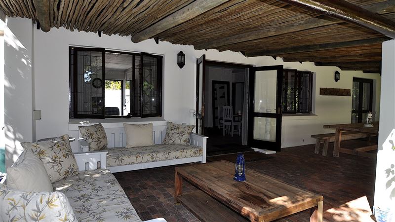 Stableford 30 is 350 metres from the popular Robberg Beach in Plettenberg Bay and offers quality accommodation to a family or group of friends. It is close to several shops, restaurants, the beach, activities and attractions.This house has three bedrooms and can accommodate up to seven guests. The main bedroom has a queen-size bed and leads onto the patio. The second bedroom has two single beds. There is a separate bathroom with a bath, shower, toilet and basin. The third bedroom is in the attic and is reached with outdoor steps. It has a queen-size bed, a single bed and an en-suit