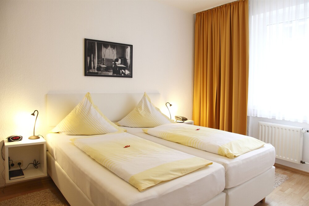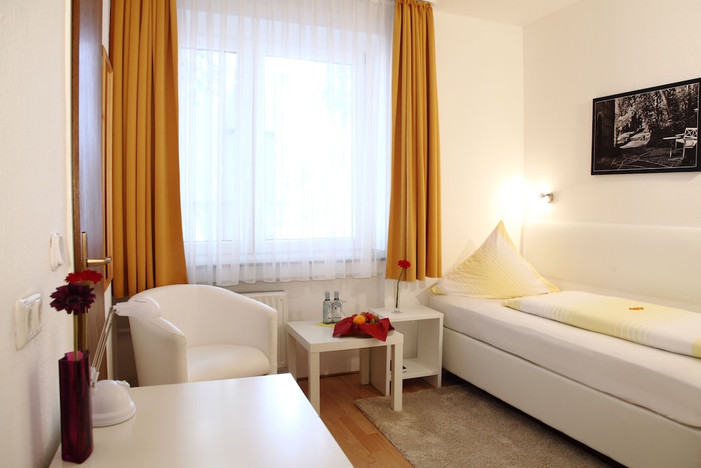 This 3-star family-run hotel lies in the tranquil Rüttenscheid district of Essen and is centrally located within easy reach of the Essen exhibition centre main railway station and Düsseldorf Airport.The Hotel Rheinischer Hof offers comfortable accommodation. On checking in guests enjoy a welcome drink and a complimentary bottle of water.From the Rheinischer Hof you can easily walk to the Grugahalle (hall) Grugapark (park) and the Essen exhibition centre within 15 minutes.Otherwise the hotel is just 80 metres from the nearest nearby tram stop and underground railway station taking to quickly and easy to all parts of Essen.Guests at the Hotel Rheinischer Hof also enjoy a complimentary ticket for the use of the local transport network during their stay.