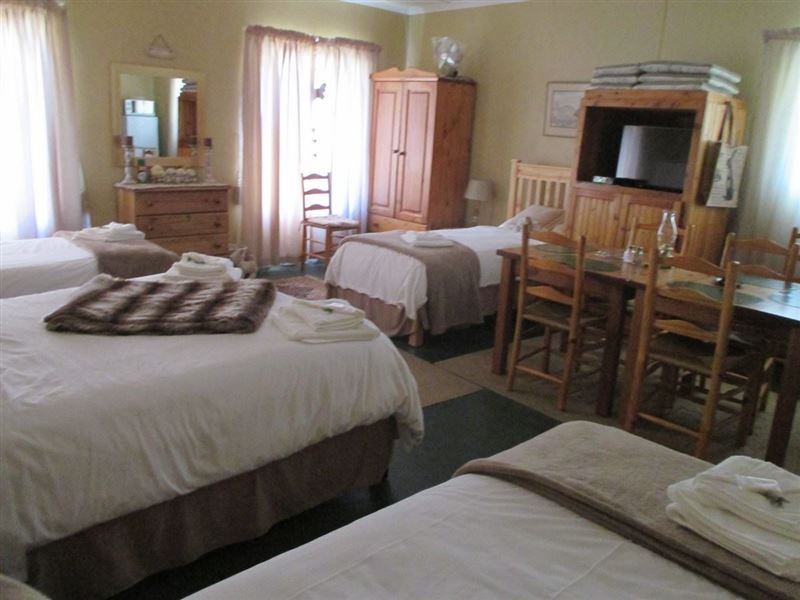 This family unit has one double and three single beds. Equipped with a small kitchen and a full bathroom with bath and shower. Self catering. Safe parking is provided.There is a large stoep to sit on while enjoying the blue skies and starry Sutherland nights. Breakfasts can be enjoyed at a number of restaurants within walking distance of the guesthouse. Sutherland is a small town located in the Northern Cape province of South Africa. It is surrounded by the western Roggeveld Mountains in the Karoo.We run our own private stargazing with six telescopes at STERLAND
