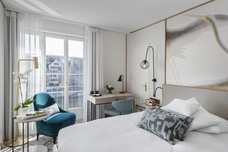 The Storchen Zürich is a traditional first class establishment with 67 stylishly elegant rooms and suites in the heart of the old city. Whether at the reception, at the Conciergerie, in the restaurant La Rôtisserie or on the Terrasse, in the Cigar Bar, in our trendy Barchetta or even in our elegant hotel lobby, our long tradition of hospitality, together with our warm and personal service, can be enjoyed throughout the hotel.. All of our 67 air-conditioned rooms and suites have incomparable views either of the river Limmat or of Zurich's historic quarter. They are equipped with TV, PayTV, radi