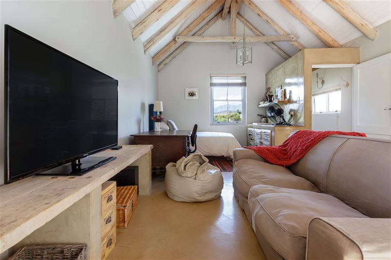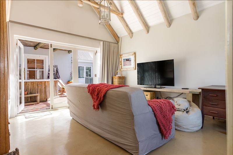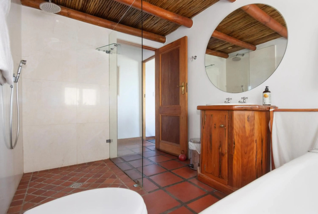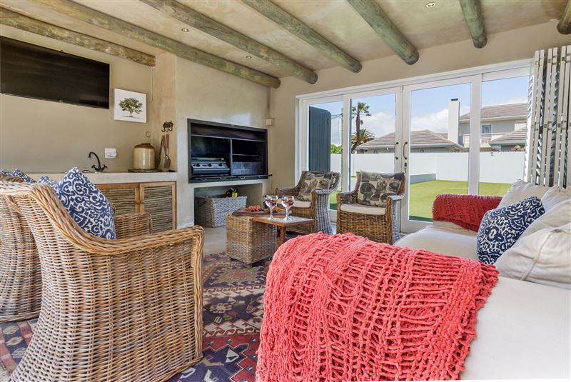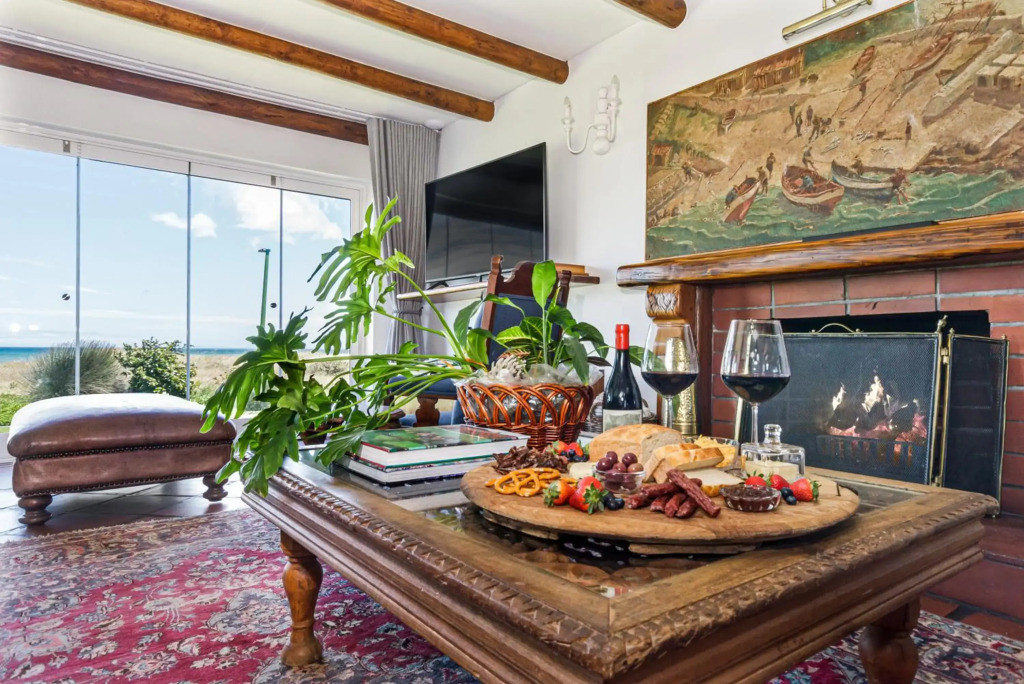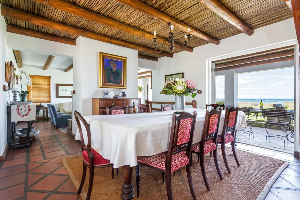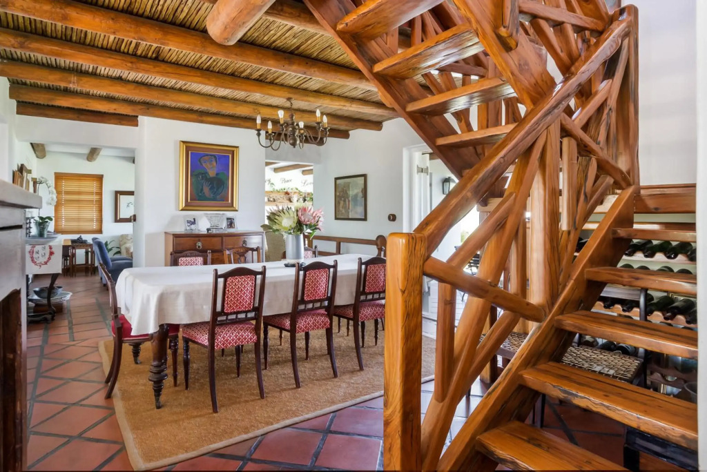 Situated in a secure golf estate overlooking False Bay, Strand Beach Lodge is the ideal choice for a memorable coastal holiday. It is located in the seaside suburb of Strand, making it a great option for water enthusiasts.This stunning thatched-roof lodge has four lovely bedrooms, of which three have en-suite bathrooms and one has an open-plan bathroom. Some rooms have private balconies offering scenic views of the surrounding area and the ocean.This charming lodge has more than one living area, ensuring that guests have plenty of opportunity to relax and unwind. The