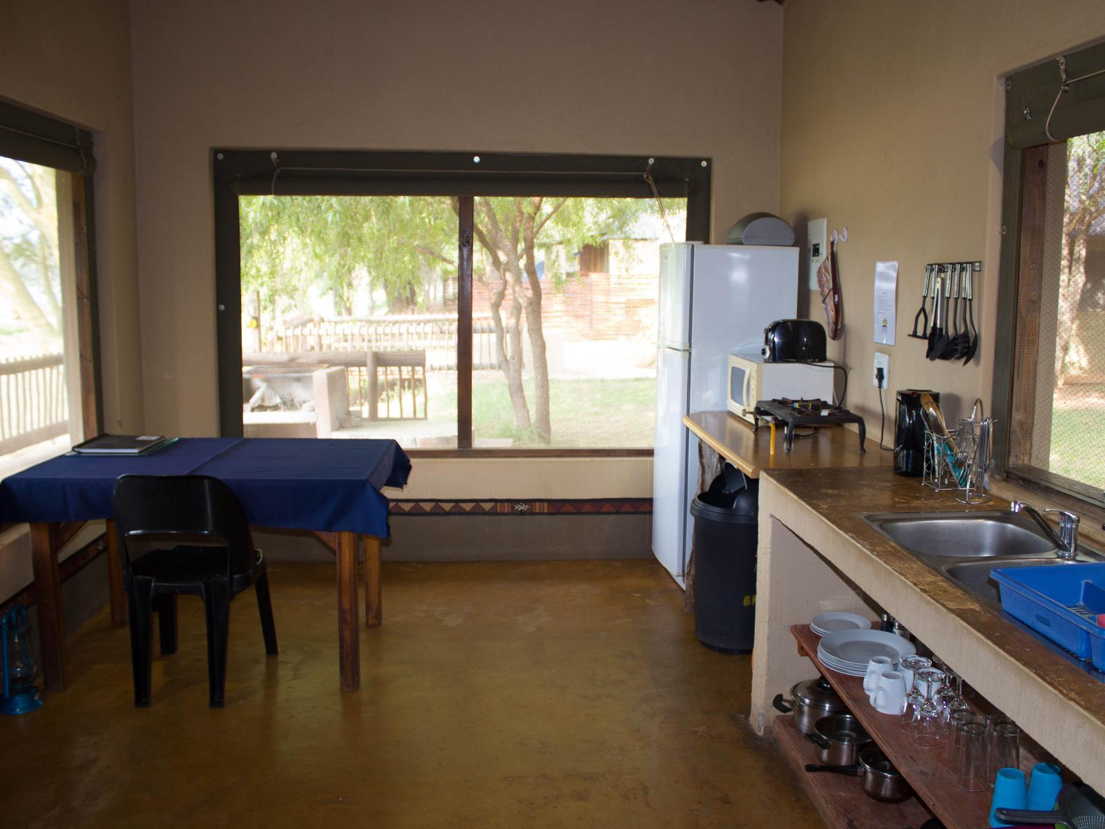 Welcome to Struwig Eco Reserve, a special place in the heart of the African bushveld. The reserve has seven thatch roofed self-catering chalets and a large thatch roofed dormitory for large groups. Accommodation is modern, comfortable and cleaned daily. Towels are not provided. The rate includes a two hour game drive as well as a bundle of wood per unit. Catering is also available on request. No shop on site and the closest town is Hoedspruit (40km). We have a superb central lapa equipped with a braai area and full views across the Olifants River. The river is lit during evenings