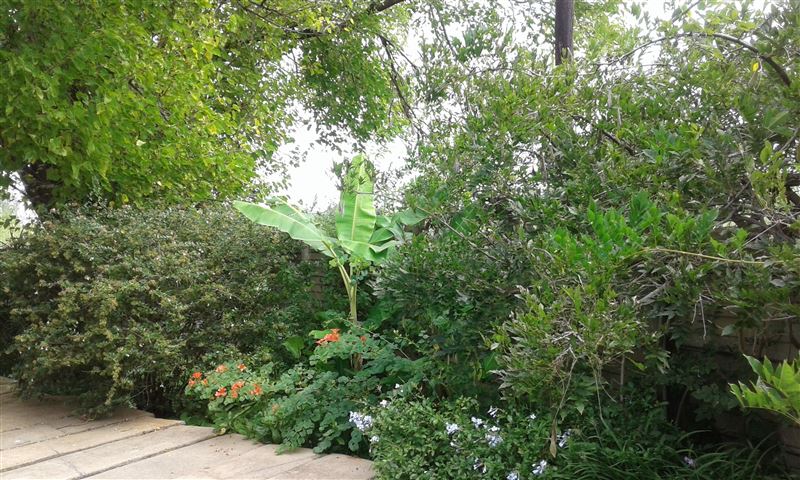 Safe play area/ Secret garden/Lawns for games/patio, braai/huge trees/3 bedrs/2bathr /TV/Wifi /kitchen/porch 2 s/beds/spacious, pristine,friendly home/400 m from river/parking 3-4 cars....