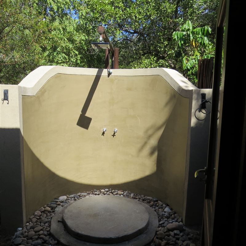 The suite is self-contained and can accommodate two people. Comprising a king-sized bed or twin beds. Guests have access to a private outdoor shower, outdoor patio, braai area as well as a communal swimming pool.