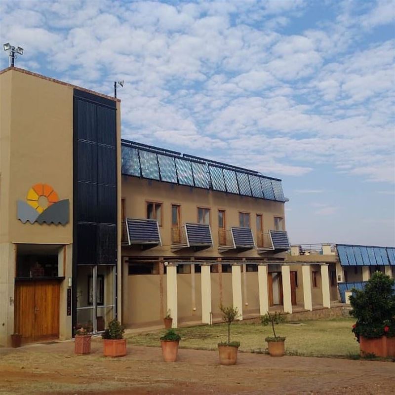 Sunplace is a fully self-sustainable lodge situated in the beautiful Hartbeespoort Dam area. The lodge is completely off the grid and 100% solar dependant for its electricity, hot water supply and underfloor heating. With 11 Queen size en-suite bedrooms and and a 240 sqm function hall, we are sure to be able to cater for your accommodation and event needs. Each room also has two bedside tables, a desk and chair, a luggage trunk, and cupboard for clothes. A 91sqm sundeck overlook the Hartbeespoort Dam with ever changing beautiful sunsets. Guests can enjoy the tranquillity of the surrounding na