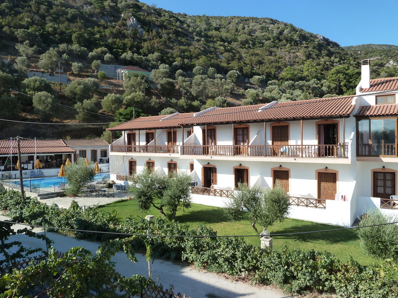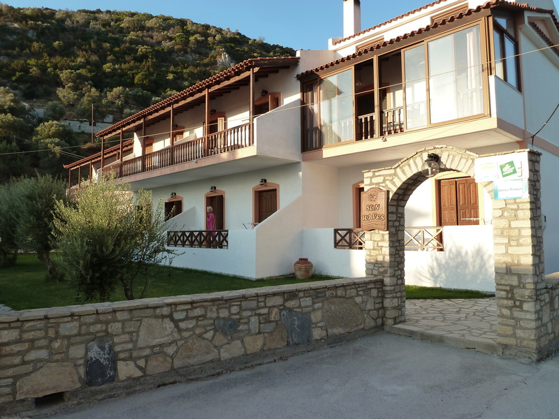 Sun Waves Apartments are located at the delightful bay of Kerveli, in the very green hilly landscape in the east side of the island. It is a small holiday resort with a warm and friendly atmosphere. The 10 apartments are managed very attentive by the owners. It´s only 40 m away to the pebbled beach. Samos town you can be reached in about 10 minutes by car. For getting to Samos town the owner´s minibus transports guests in the morning at 10 o´clock free of charge three times weekly. The distance to the airport is 15 km.EquipmentThe apartments can be used from 1 to 4 persons and dispose of a living- room, a bed-room, a bath-room with shower, cooking facilities and a big balcony. The rooms are ready-furnished and have air-condition (5 Euro extra a day), a refrigerator, kitchen-utensils, ironing-board and an electric iron.Swimming-PoolSince 2004 is the new swiming-pool between apartmenthouse and restaurant. It is provided with sunlounger and parasols.SwimmingThe charming surroundings are attractive. You can make vast strolls. It´s a wonderful place for relaxing and swimming. It´s only 40 m away to the pebbled beach. The use of sunlounger is free of charge.You have enough possibilities to take a sun bath at the holiday resort.It isn´t far to Mykali and Psili Ammos , two of the most beautiful beaches of the island.RestaurantA small pleasant restaurant belongs to the appartment resort. We serve grilled meat (souvlaki, pork steak, beef, sausage), Gyros and Pitta bread with souvlaki or beef. You can also order a coffee to drink in the snack bar or to take it away. The veranda is the place where you can enjoy the characteristical Greek food while you have a picturesque view of the swimming pool and the garden. We cook with origin olive-oil from our own production. One of the specialities of the house is fresh fish grilled by Christos.