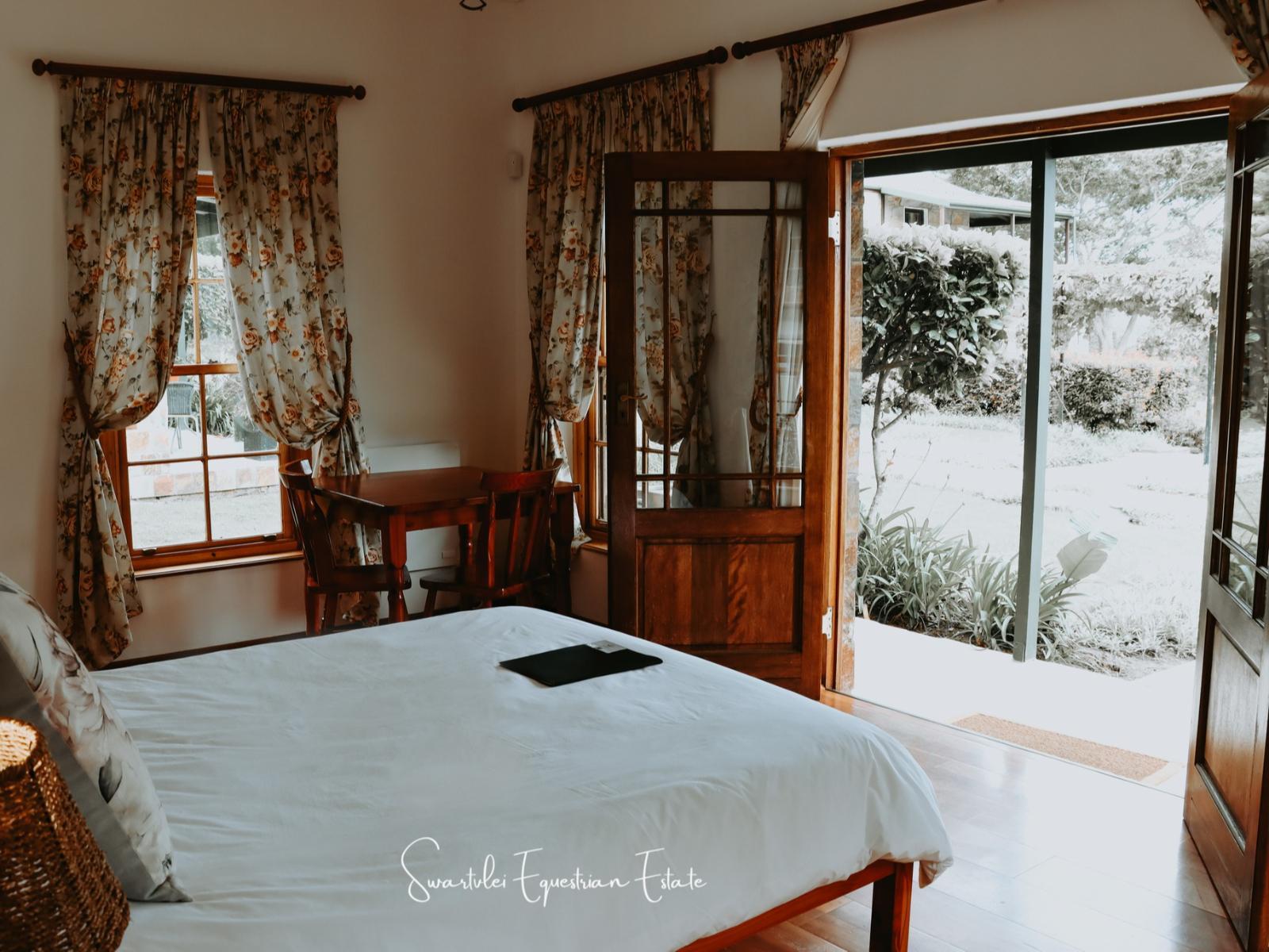 Swartvlei Equestrian Estate is a Guest Farm situated 15km from Sedgefield. We have five self-catering cottages and a manor house. We have a swimming pool area, tennis court, clubhouse and conference room on site. Meal options are available on request. Please note it is a gravel road (in a good condition) to the farm. All cottages have a private bathroom with a shower and bath, an equipped kitchenette, flat screen TV with satellite channels and Wi-Fi. The main house has three bedrooms, the main bedroom has an en-suite bathroom, flat TV with satellite channels. The other two bedrooms have a sha