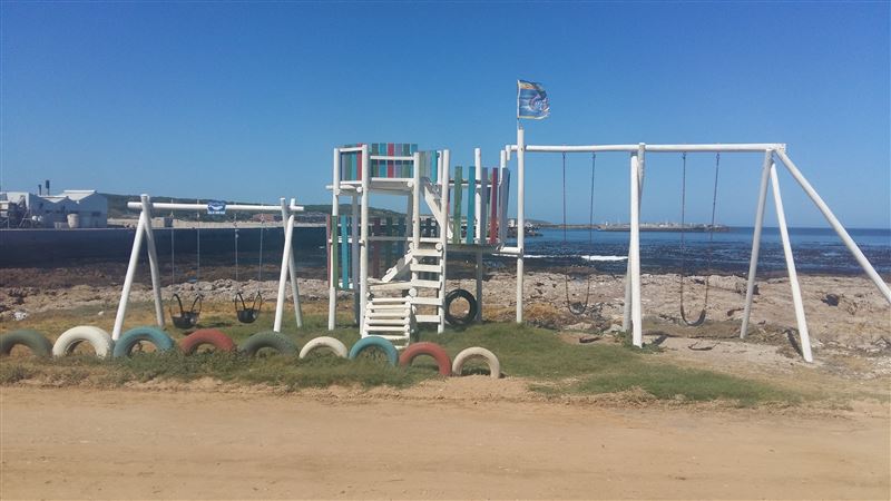 The house is on the grounds of the Gansbaai Caravan park and there is a small jungle jim right at the waters edge where children can play safely.