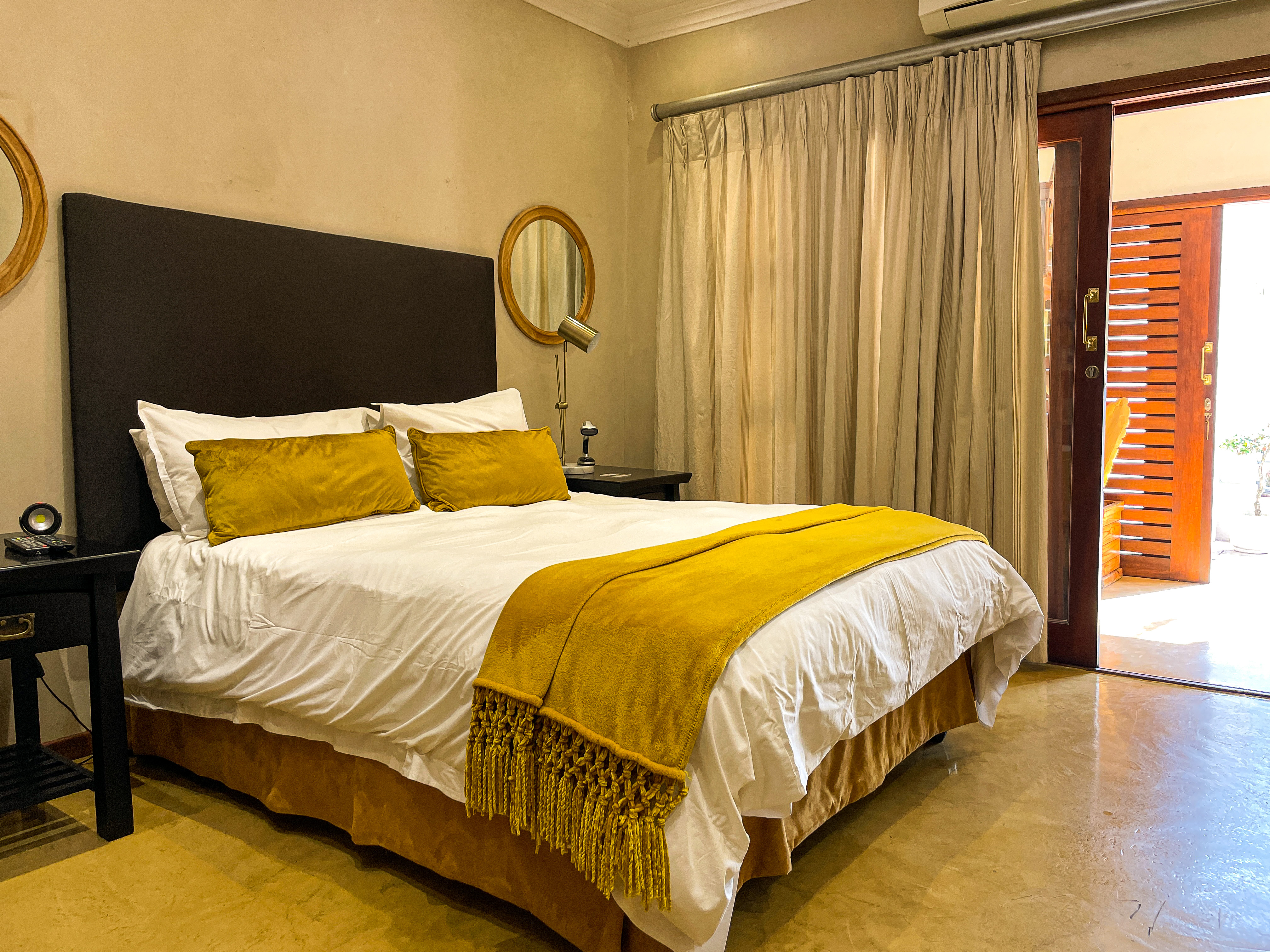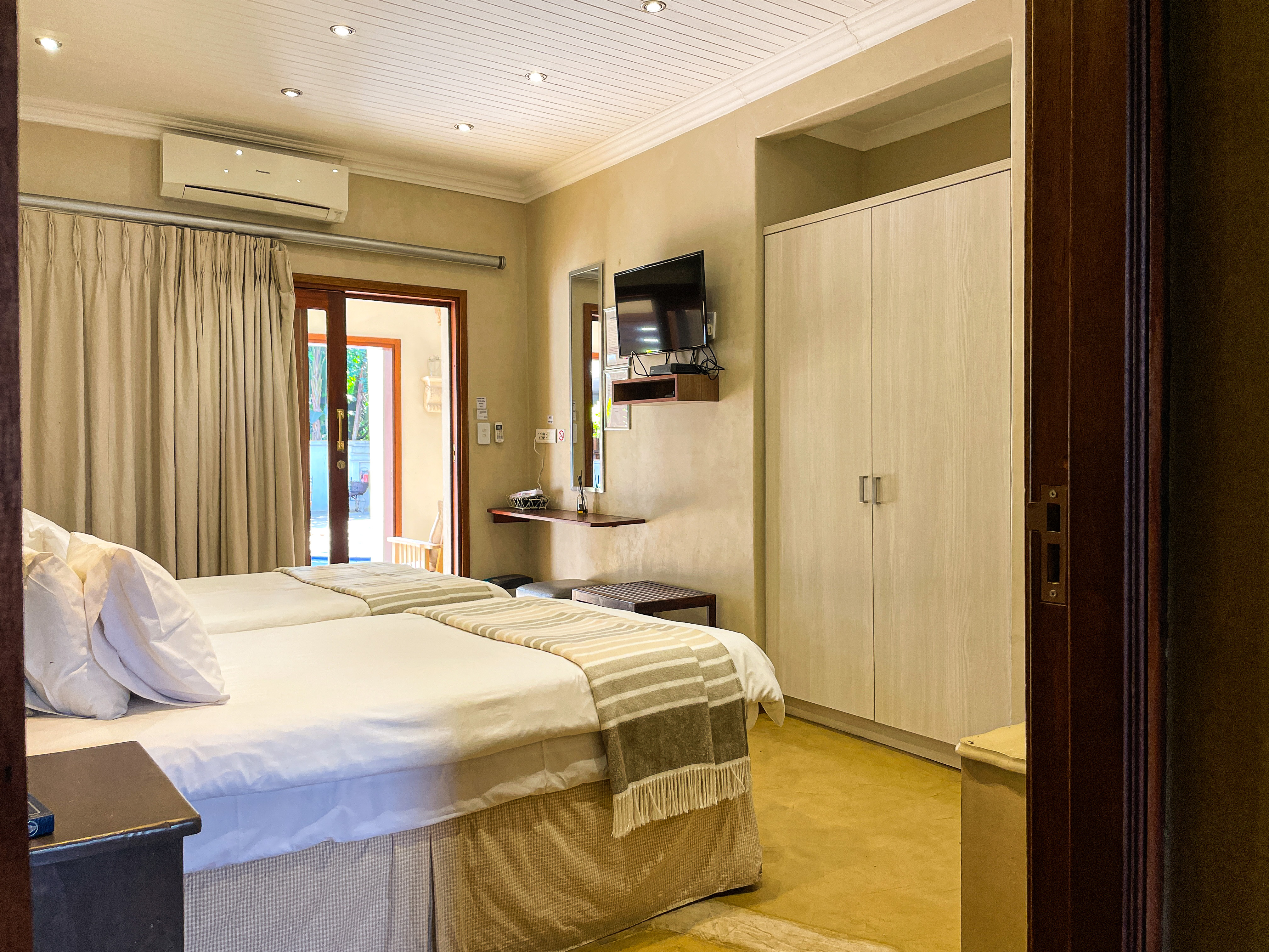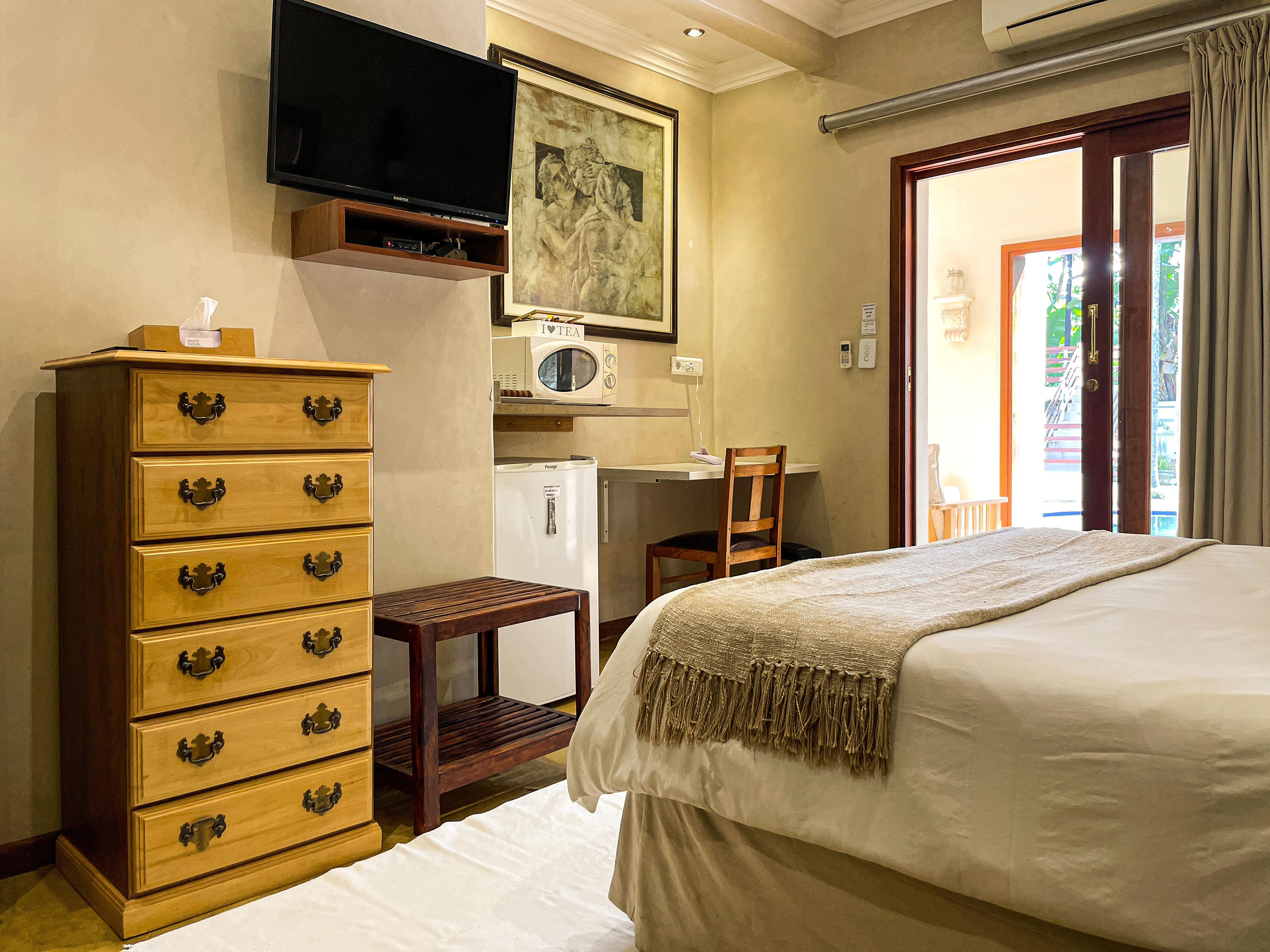 The rooms are all comfortably furnished, enhanced with rich textures and designer furniture. All the rooms have separate entrances and modern facilities, including flat screen TVs, luxury linen, air-conditioning, and ceiling fans.