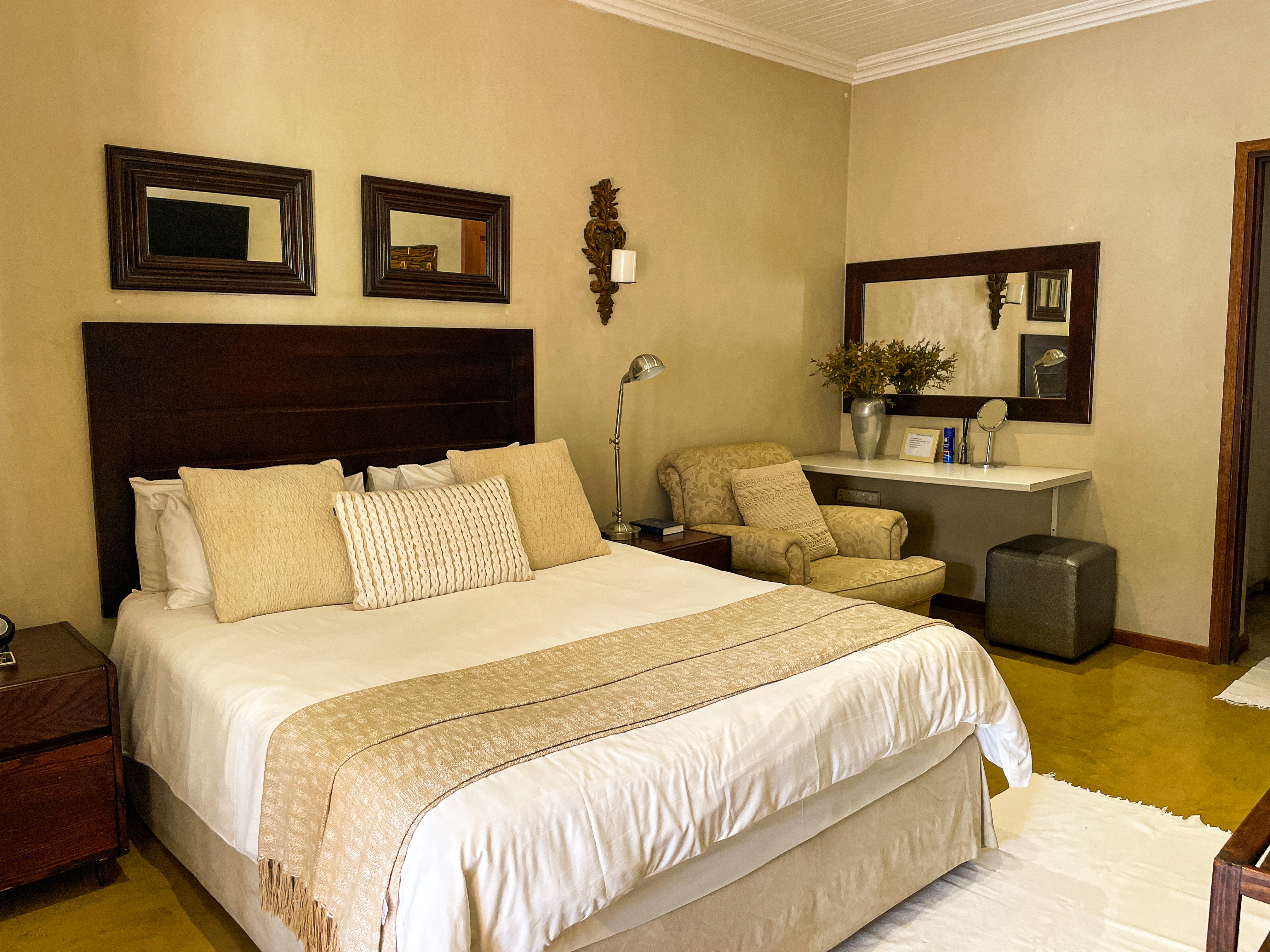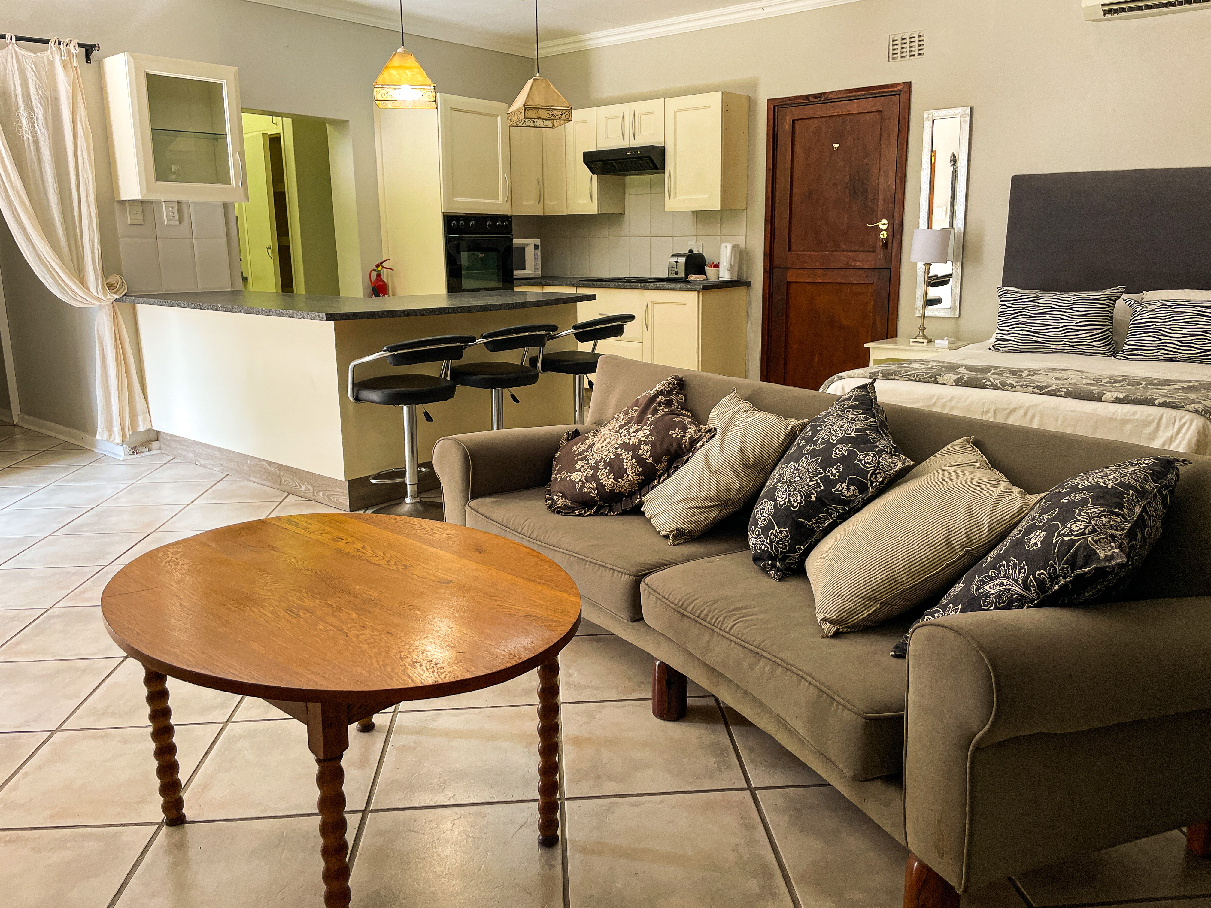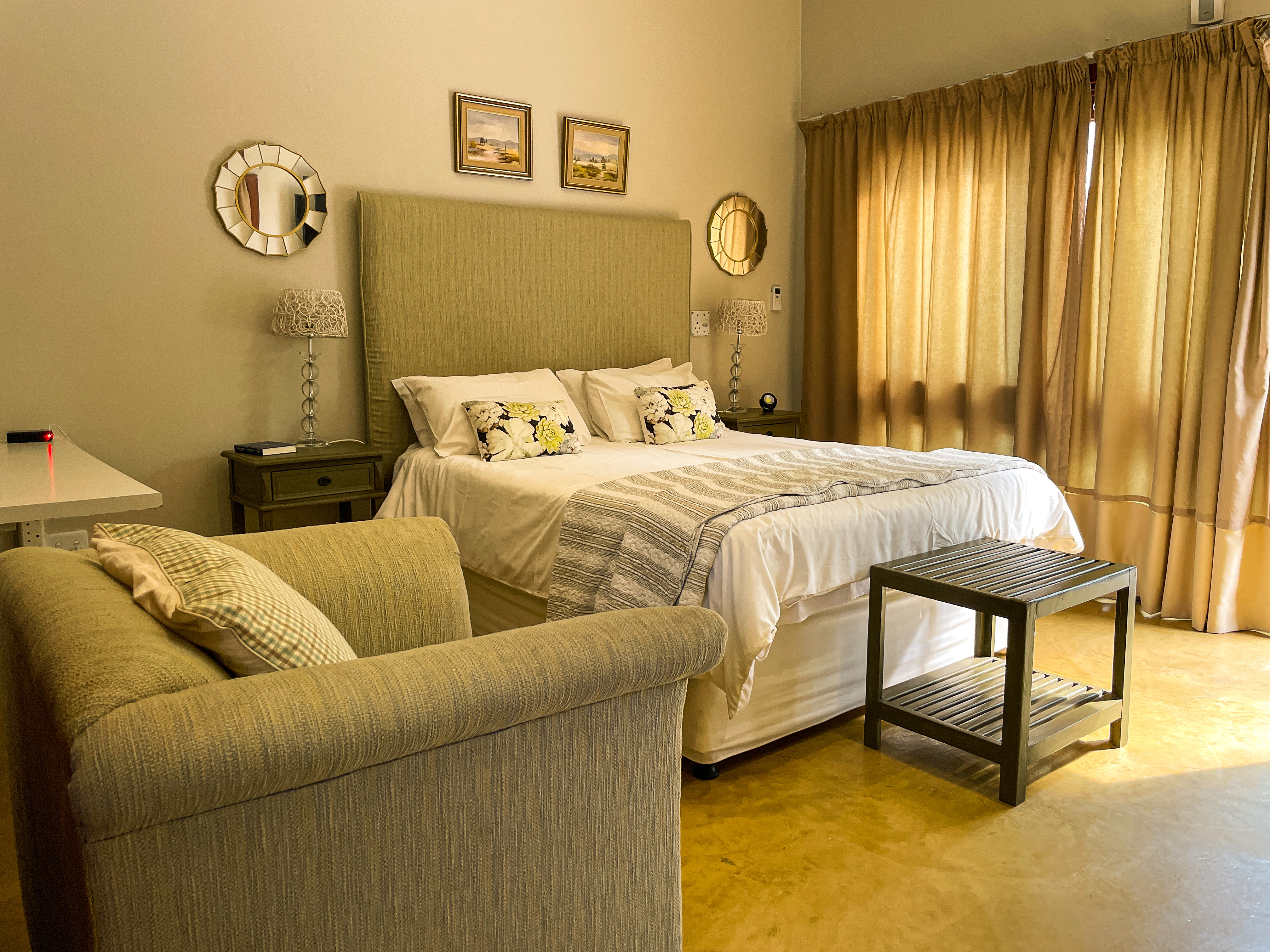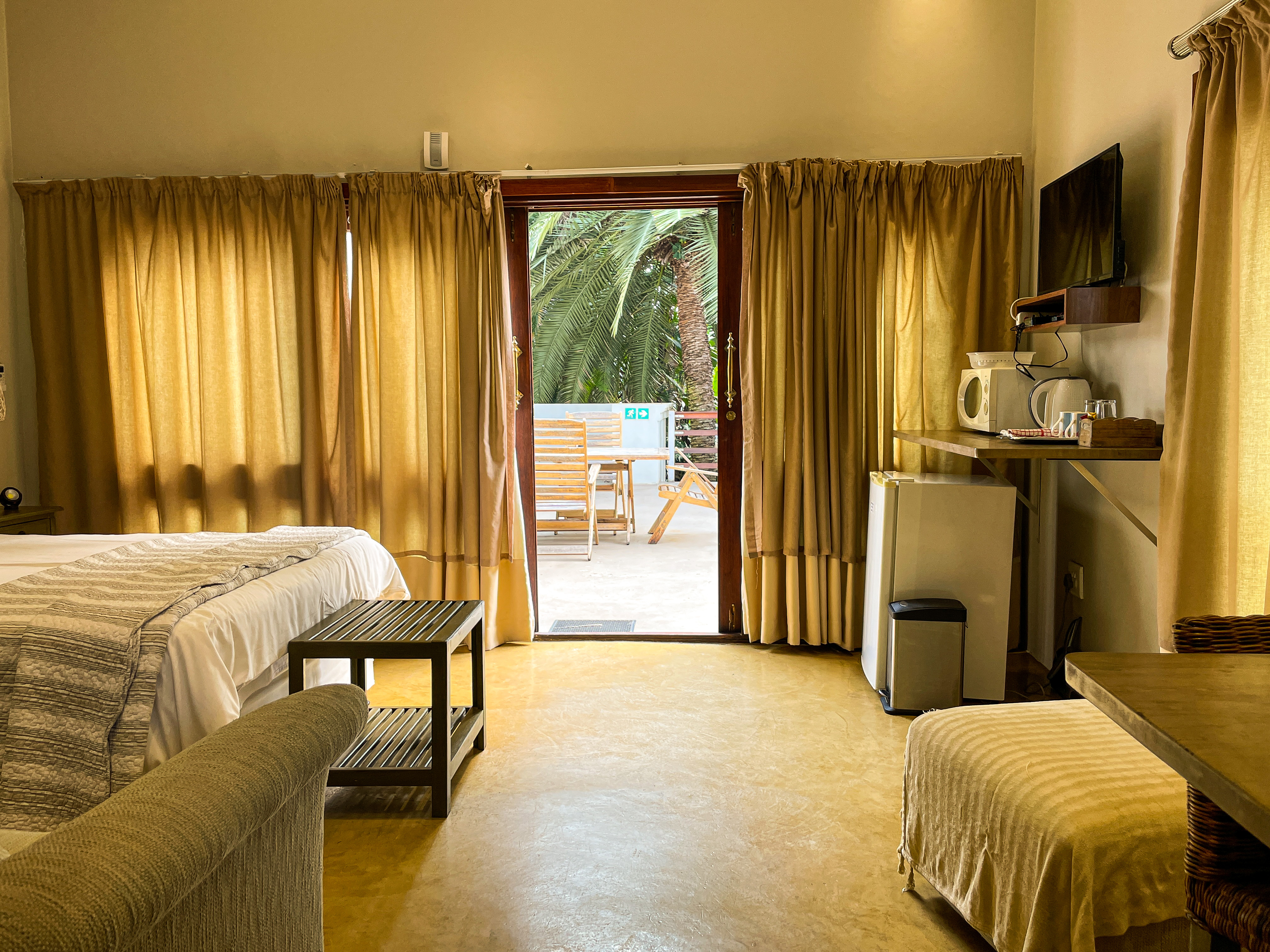The rooms are all comfortably furnished, enhanced with rich textures and designer furniture. All the rooms have separate entrances and modern facilities, including flat screen TVs, luxury linen, air-conditioning, and ceiling fans.