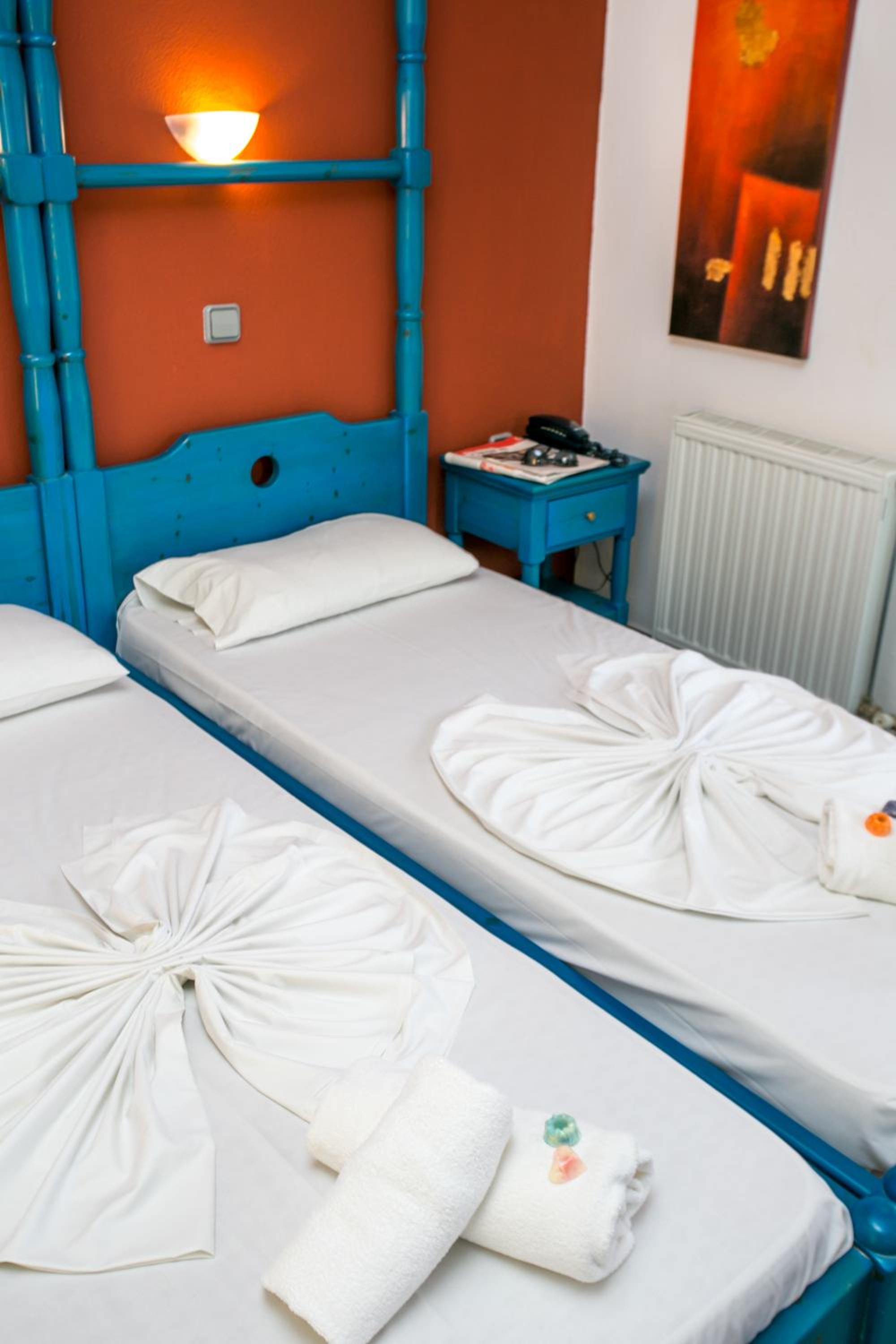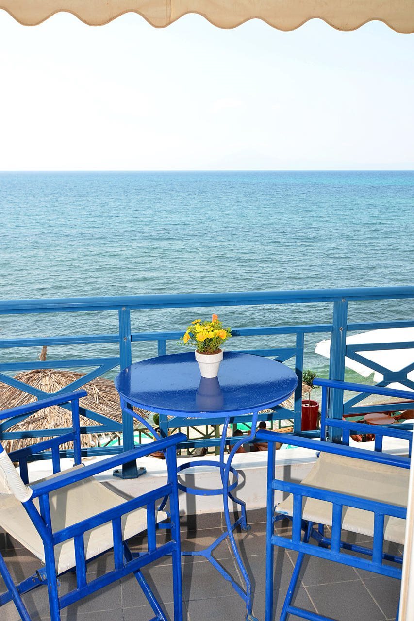 The charming hotel Thalassies enjoys a perfect seafront location in the holiday resort of Limenaria, adjacent and with private access to a nice sand and pebble beach./The rooms of the hotel are decorated in traditional Aegean style and boast views of the sea and Mount Athos, the swimming pool or the mountains of Thassos, the Emerald Island of the North Aegean Sea. The hotel features a range of services and amenities such as a garden and pool area with separate pools for adults and children, a fitness centre with sauna, massage and gym, a cosy Greek tavern as well as a wonderful beachfront terrace with fantastic sea views. /The resort centre is just 200 m away; the marina of Limenaria can be reached within a short stroll. Limenas, the island capital and main gateway to Thassos is at a distance of about 42 km. This hotel is a great choice to spend a beach holiday in a familiar environment.