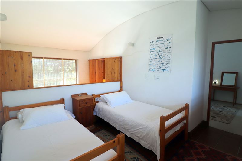 This is a marvelous find in Arniston. This house can accommodate six people. The house is fitted with all needed amenities. Upstairs consists of a bedroom with a queen size bed and ensuite bathroom. Second bedroom with two single beds and ensuite bathroom. Two single beds in passage between the two rooms. The downstairs consists of a large open plan living room and kitchen. There is a laundry room, fireplace and third toilet. Enclosed garden with small, portable braai for our guests to use. The house can be jointly rented with The Weaver next door to increase capacity for up to