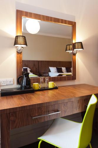 Facilities and services include a 24 hrs reception, restaurant, lounge bar, wireless Internet in public areas, safe box at reception, meeting room and parking (extra charge).The rooms are equipped with TV, telephone, wireless Internet, hairdryer and coffee/tea facilities.Address: 34-38 York Place, EH1 3HU, Edinburgh, Scotland.