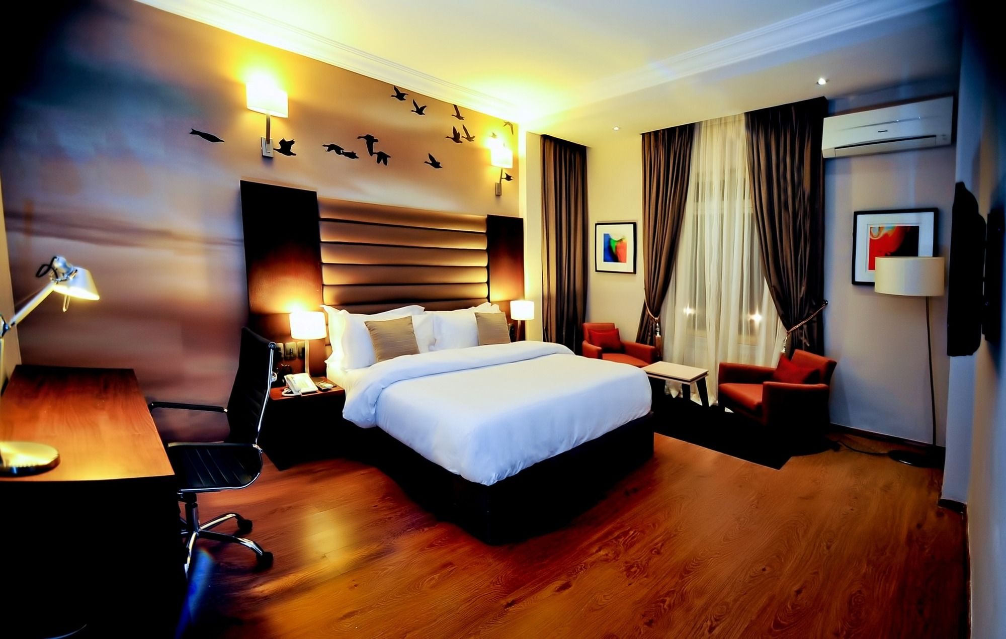 Located in Lagos (Ikeja), The Sojourner by Genesis is minutes from Computer Village and Ikeja Golf Club. This 4-star hotel is within close proximity of Kalakuta Museum and Actis Ikeja Mall.Rooms Make yourself at home in one of the 94 air-conditioned rooms featuring refrigerators and flat-screen televisions. Complimentary wired and wireless Internet access keeps you connected, and cable programming provides entertainment. Bathrooms have showers and complimentary toiletries. Conveniences include laptop-compatible safes and desks, and housekeeping is provided daily.Amenities Be sure to enjoy recreational amenities including a health club and an outdoor pool. Additional amenities at this hotel include complimentary wireless Internet access and concierge services. Getting to nearby attractions is a breeze with the area shuttle (surcharge).Dining Satisfy your appetite at the hotel's restaurant, which serves lunch and dinner, or stay in and take advantage of 24-hour room service. Relax with your favorite drink at a bar/lounge or a poolside bar.Business, Other Amenities Featured amenities include complimentary high-speed (wired) Internet access, a 24-hour business center, and complimentary newspapers in the lobby. This hotel has 3 meeting rooms available for events. A roundtrip airport shuttle is provided for a surcharge (available on request), and free self parking is available onsite.