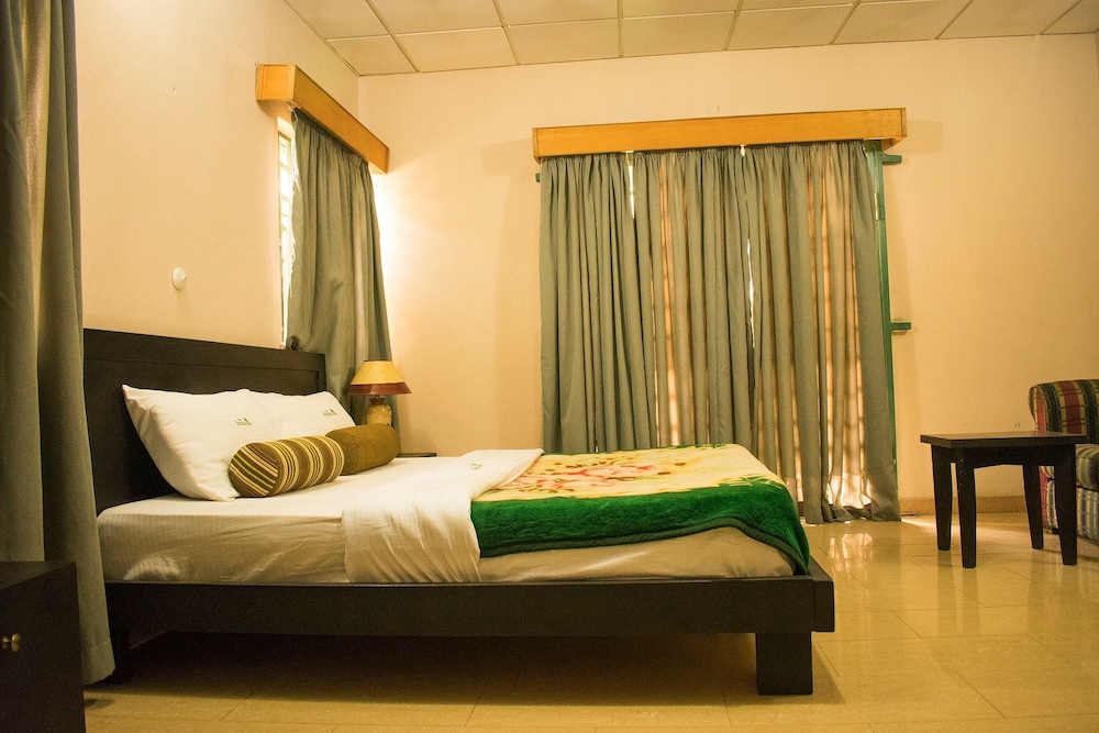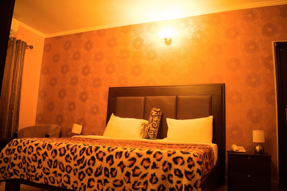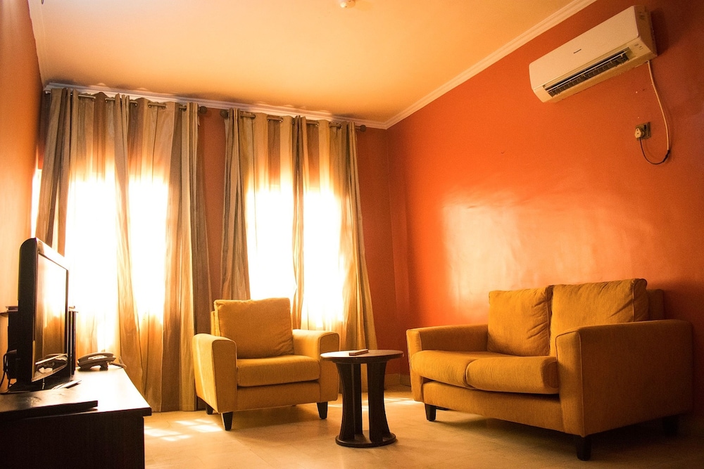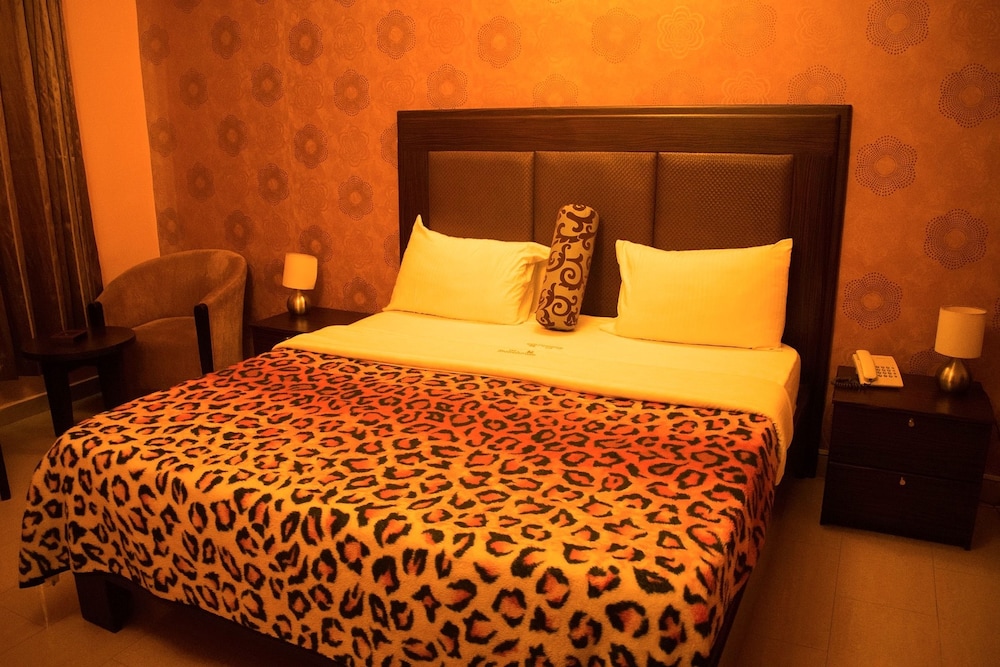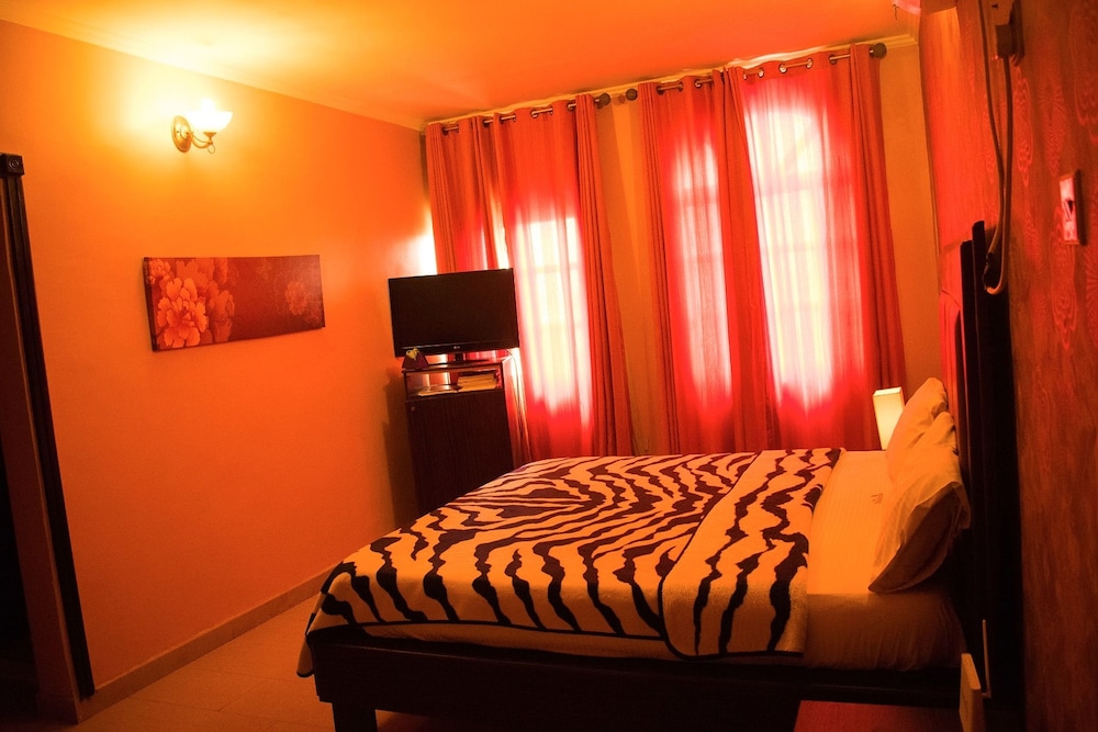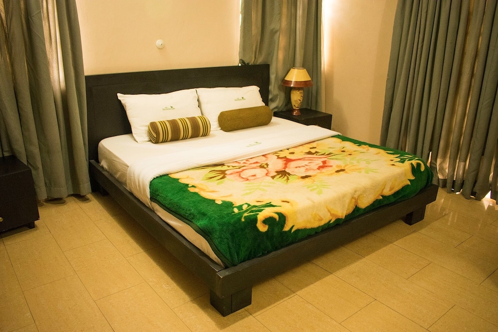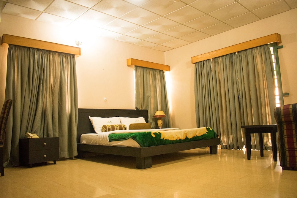 The onsite restaurant serves African dishes, prepared from fresh ingredients by seasoned chefs. The bar is fully stocked with drinks, beverages and cocktails of choice.