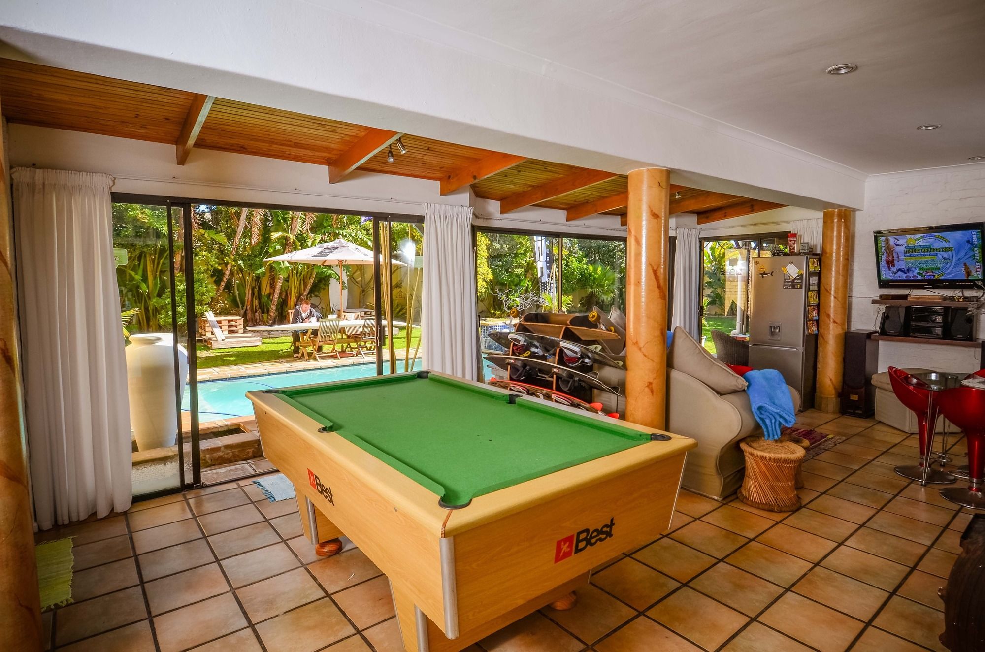With a stay at The Surf Shack - Backpacker in Cape Town (Blaauwberg Coast), you'll be convenient to Kite Beach and Dolphin Beach. This hostel is within the vicinity of Big Bay and Sunset Beach.Rooms Make yourself at home in one of the 9 individually decorated guestrooms, featuring microwaves and minibars. Prepare your meals in the shared/communal kitchen. 32-inch flat-screen televisions with satellite programming provide entertainment, while complimentary wireless Internet access keeps you connected. Bathrooms have complimentary toiletries and hair dryers.Amenities Enjoy recreation amenities such as an outdoor pool or take in the view from a garden. Additional features at this Art Deco hostel include complimentary wireless Internet access, gift shops/newsstands, and a fireplace in the lobby. The shuttle (surcharge) will take you to the nearby beach or shopping center.Business, Other Amenities Featured amenities include luggage storage and coffee/tea in a common area. A roundtrip airport shuttle is provided for a surcharge (available on request), and free self parking is available onsite.