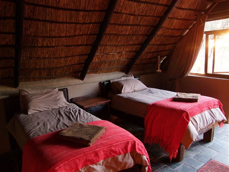 Accommodation at The Bush Camp comprises four Chalets, each with its own en-suite bathroom that has a shower, basin and toilet. These Chalets are quite spacious, and equipped with either two single beds or a double bed, each with its own private entrance. The entire camp is solar and gas powered, and is not affected by electrical outages as it is off the grid.