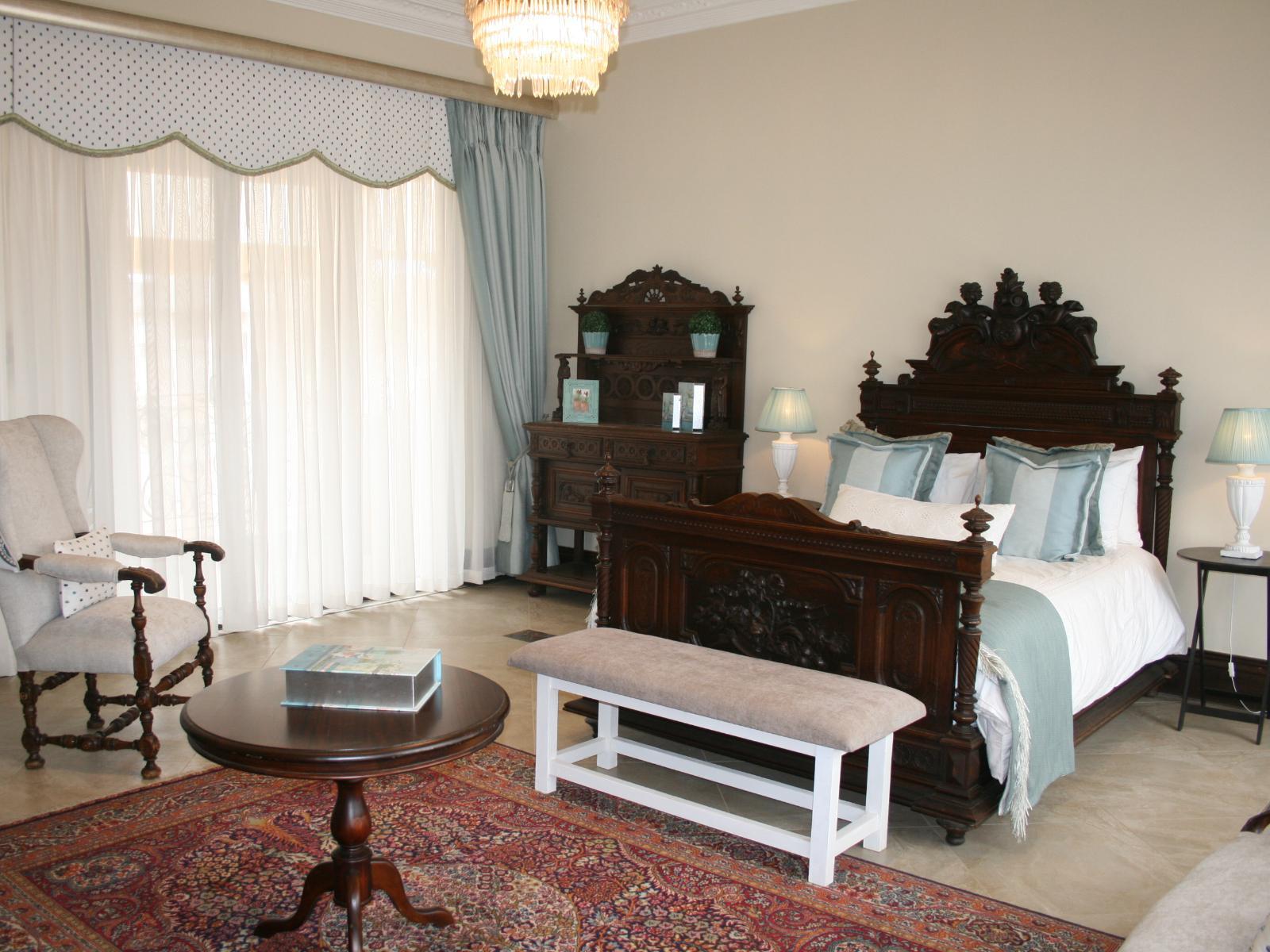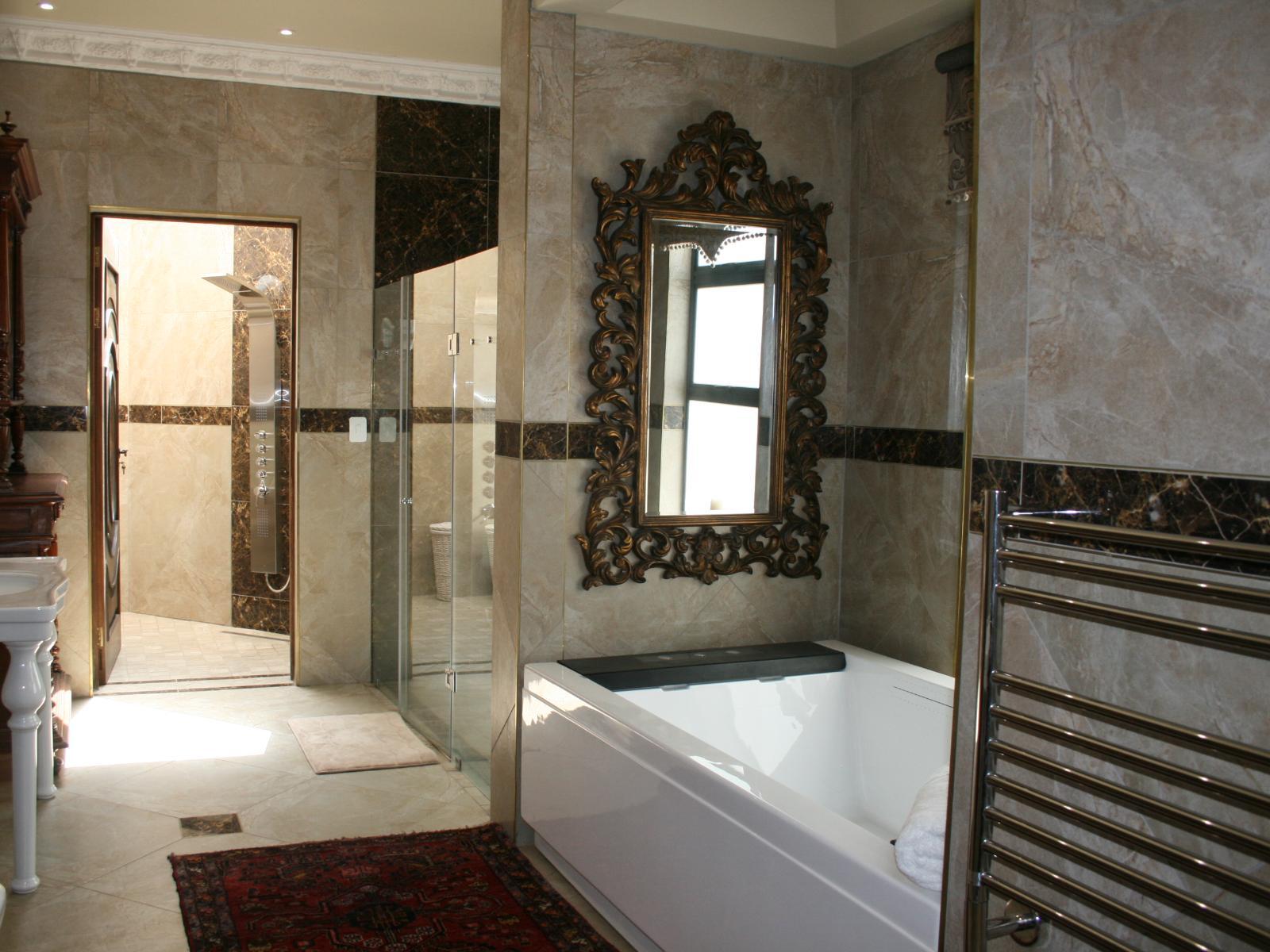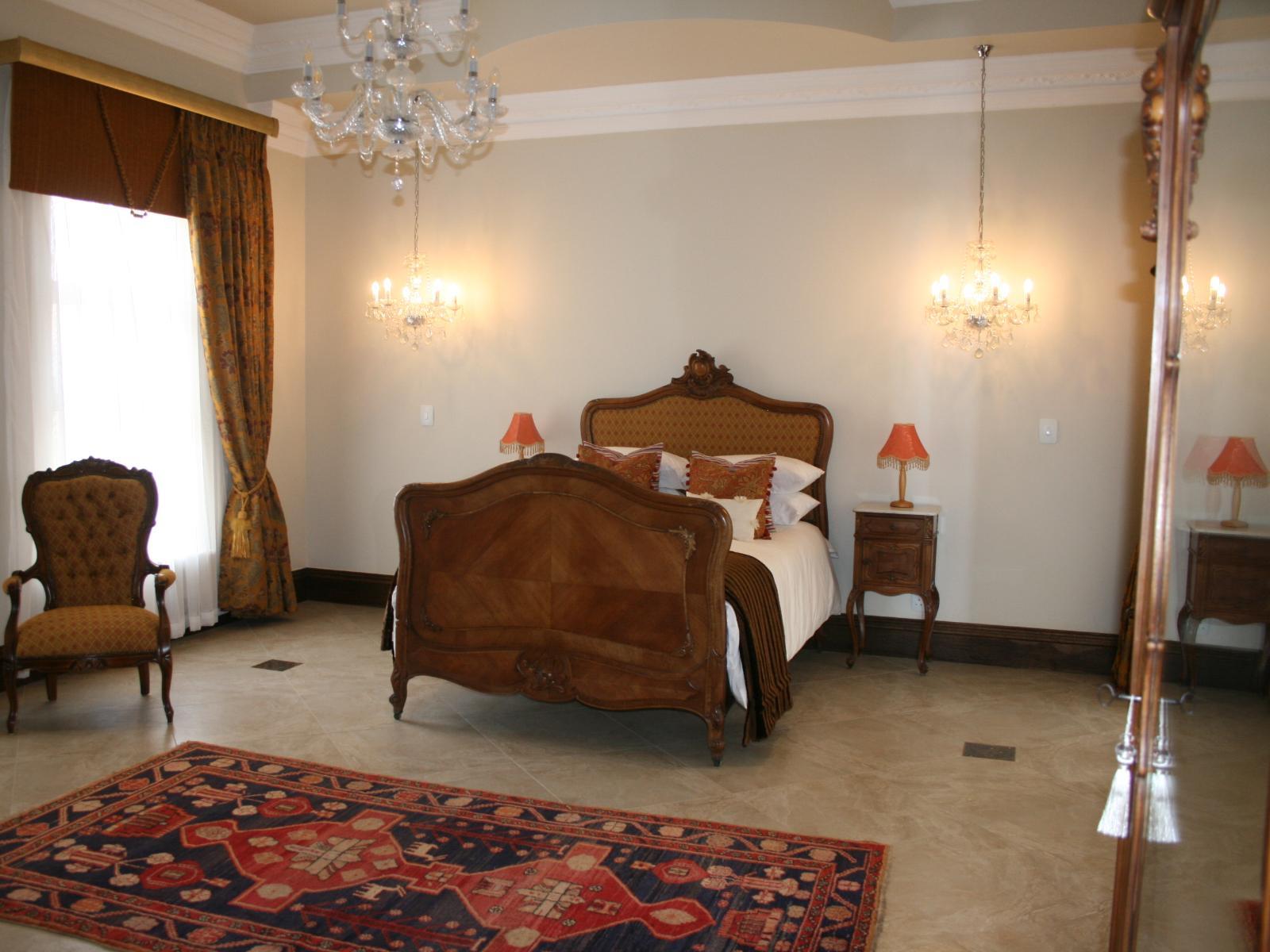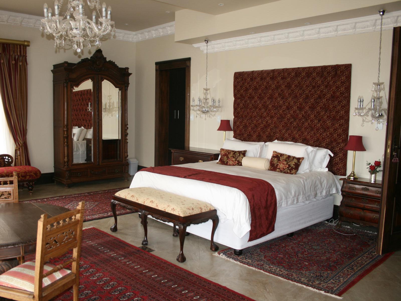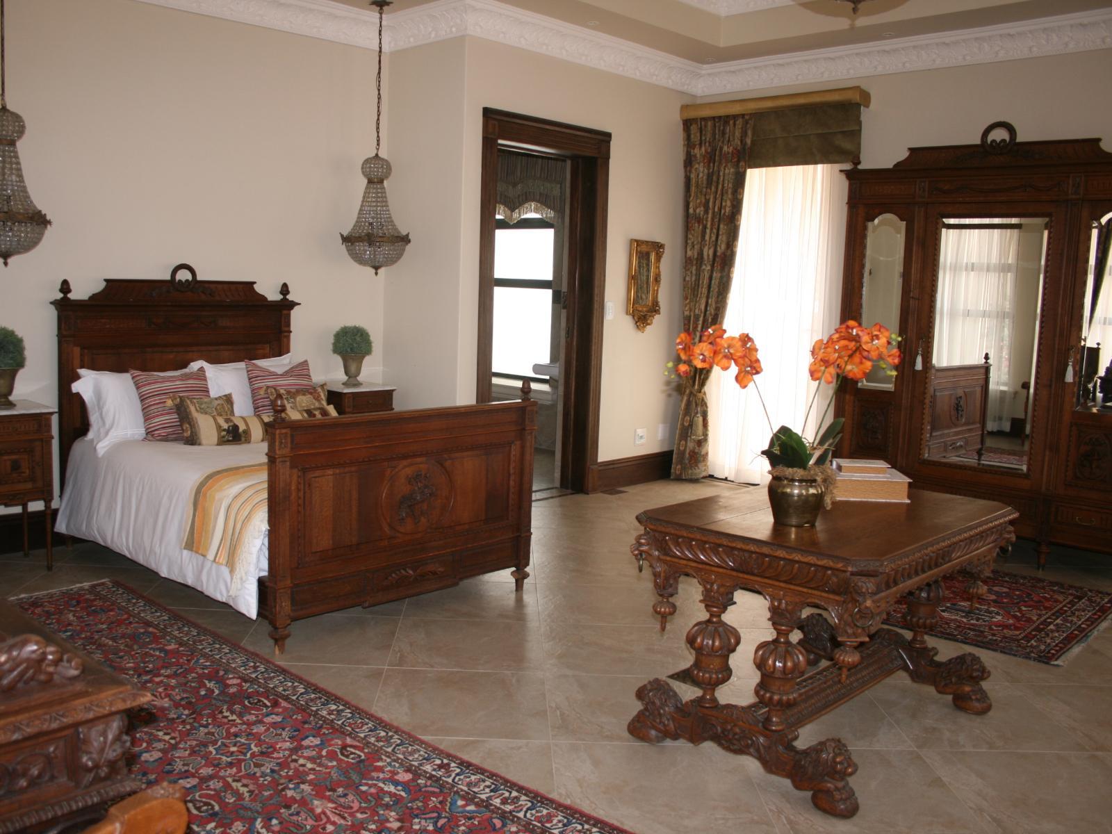 The stately Duke’s Manor Guesthouse holds guard over the undulating greens of Koro Creek Golf Estate, situated in Modimolle, Limpopo, a mere 23km from Bela-Bela (Warmbaths). The furniture throughout this grandiose manor is rich in color and texture, it adorns every room, enhanced by high ceilings, decorated cornices, period apropos gilded framed mirrors and pictures, fine embellishments and ornate light fixtures. From the entrance hall, a curved staircase embraced by iron-metal balustrades lead you to the upper level with a full-size billiard room, bar, lounge and conf