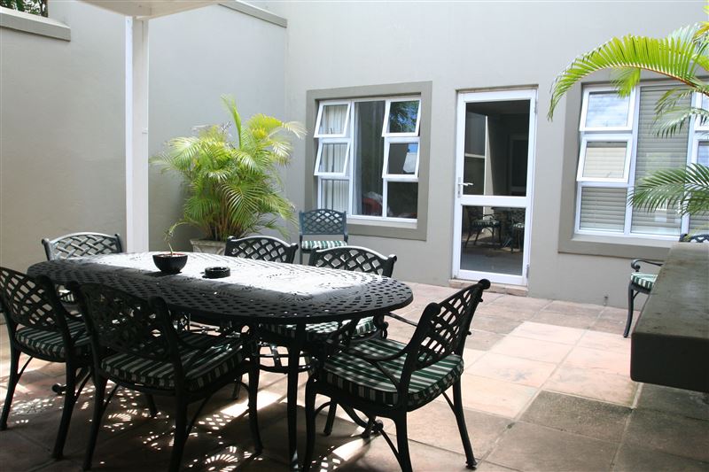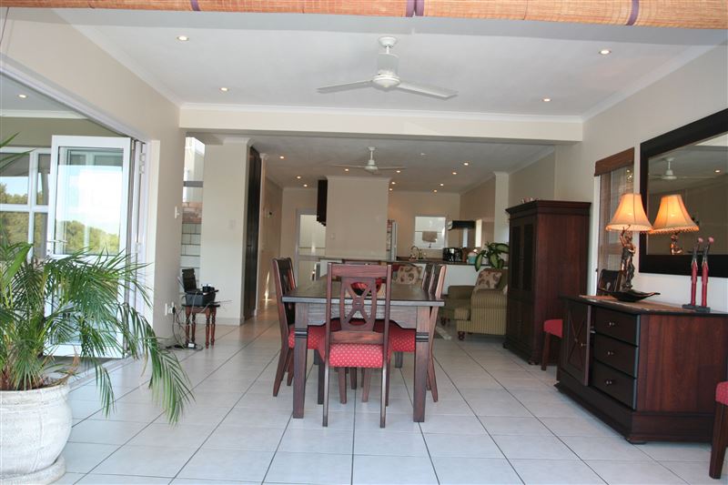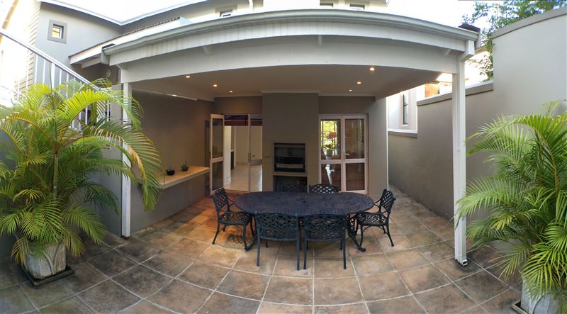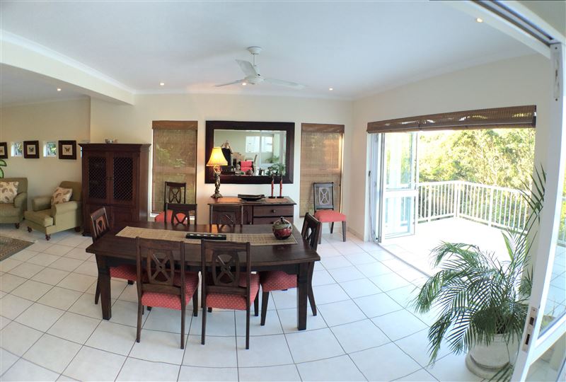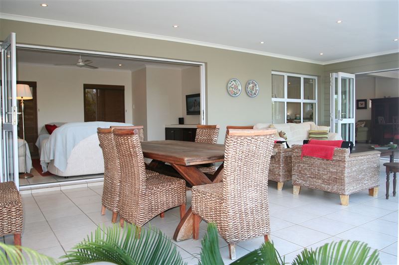 A Garden of Eden on the sea, combined with modern convenience, lifestyle and security. The Golf House at No.7 Prince's Grant offers unique serviced self-catering accommodation for you to find yourself at home on the breath-taking Dolphin Coast of KwaZulu-Natal, South Africa.Offering three bedrooms that are on the upper level of the villa and two of which enjoys canopy top views, the other located facing the road. The fourth bedroom is located on the lower level "outside" of the villa, adjacent to the outside courtyard where the braai is located. The master bedroom has a king-size b