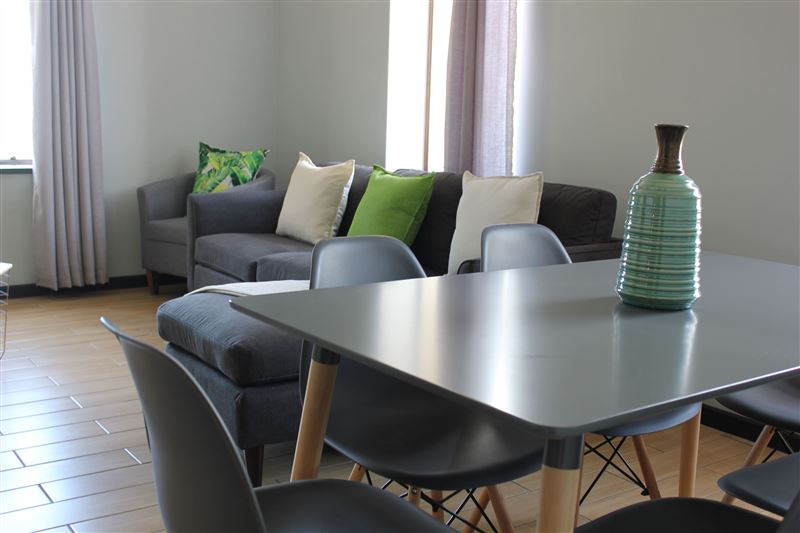 A modern two-bedroom apartment in the heart of Cape Town with a beautiful view to the City Fountains, Mycity Bus station, to the harbour as well as to Cape Town International Convention Centre. Each accommodation unit includes a seating area with a flat-screen TV, a kitchen with a dining area, and a private bathroom. It can accommodate up to five people with a large with a queen bed and a bunk bed and an extra mattress. There are many facilities a minute away, such as Farmacy, Shoppings, Restaurant, easy access to Public Transport. Gym, Wi-fi, Dstv, Netflix and many