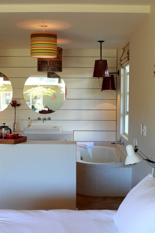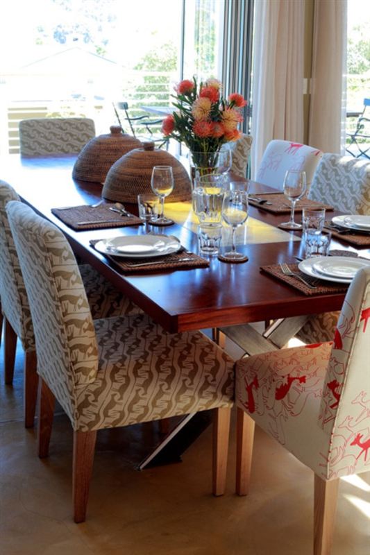 This stunning and modern house is placed near to the main road in Franschhoek. The house is an entertainer's dream and offers many modern conveniences for guests to enjoy. Located in an excellent wine region, food and wine lovers will be in their element. There are two bedrooms in the main house and a third one in the pool cottage. All of the rooms feature en-suite bathrooms, as well as under-floor heating and air-conditioning for added comfort. The upstairs living area is divided by a stair case into a comfortable lounge with snug sofas around a fireplace. On the other